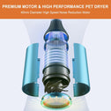 - Quiet Operation: 75-85 dB noise level reduces stress for noise-sensitive pets; lighter than most human hair dryers (13 oz).