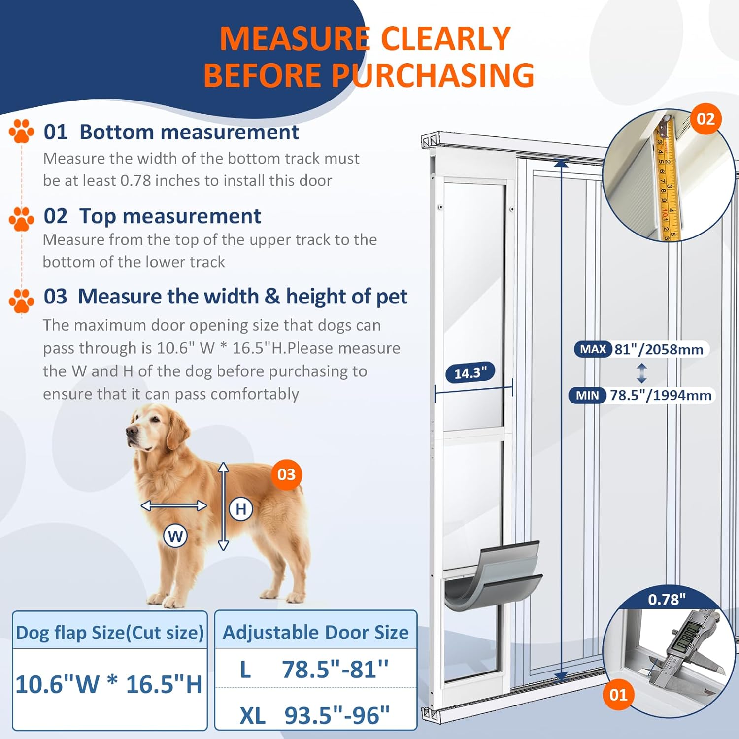 - ¿Si el tamaño es adecuado? El inserto de puerta corredera de vidrio para perros en el marco de tu puerta necesita que midas el tamaño del marco del perro y la puerta desde los rieles superiores a inferiores, de acuerdo con el tamaño. Esta puerta corredera para perros es solo para perros medianos y grandes.