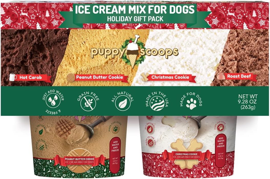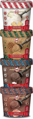 Some cups of Puppy Scoops Holiday Gift Pack is the ideal gift for dog lovers and pet parents who want to spoil their furry friends with premium, specialty treats. Designed to celebrate those special moments, like the holidays, Puppy Scoops turns any ordinary day into a joyful occasion with delicious ice cream treats that your pup will adore. Each cup offers a gourmet experience crafted with care, ensuring that every scoop is not only tasty but also made with high-quality, dog-friendly ingredients.