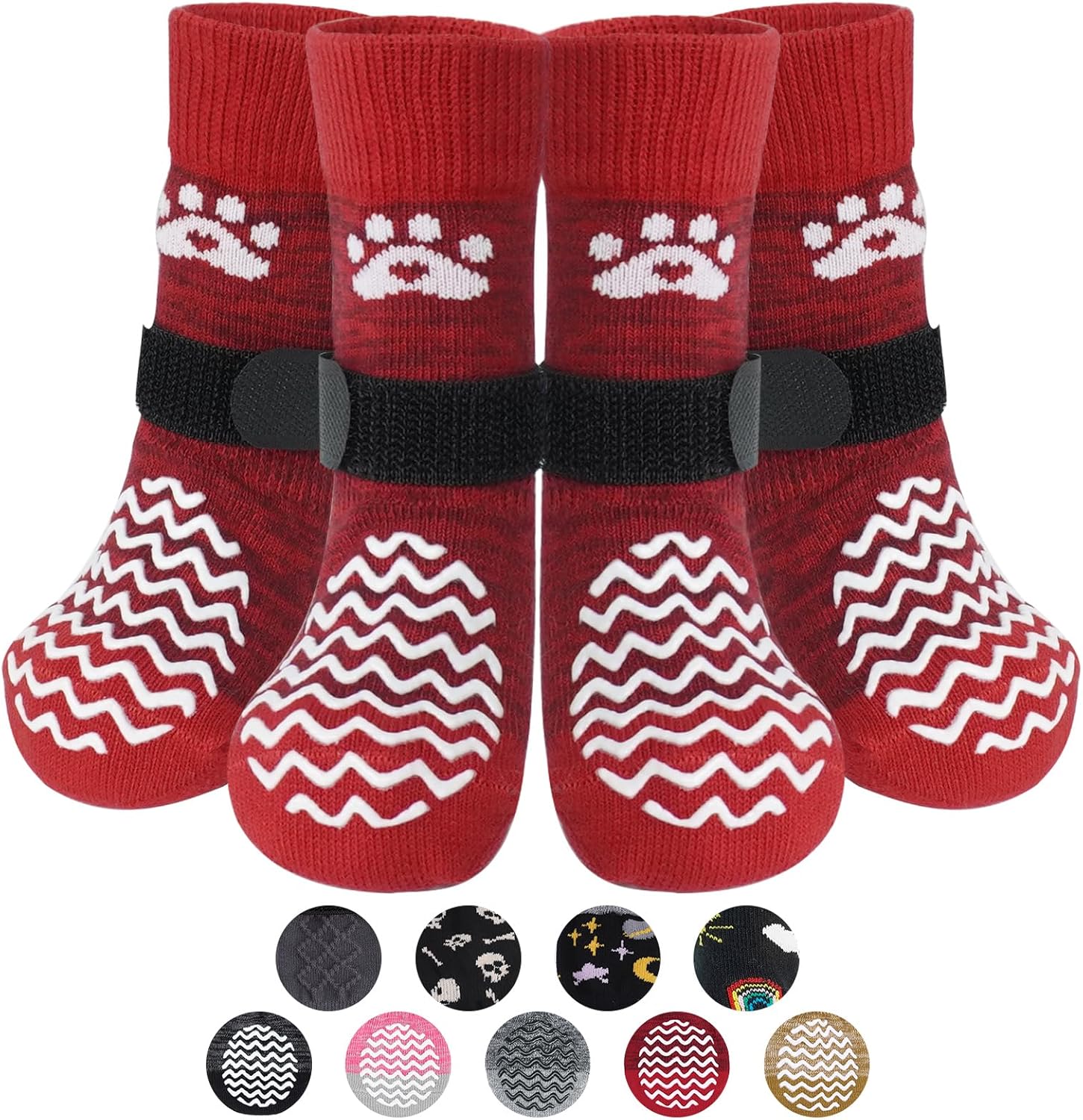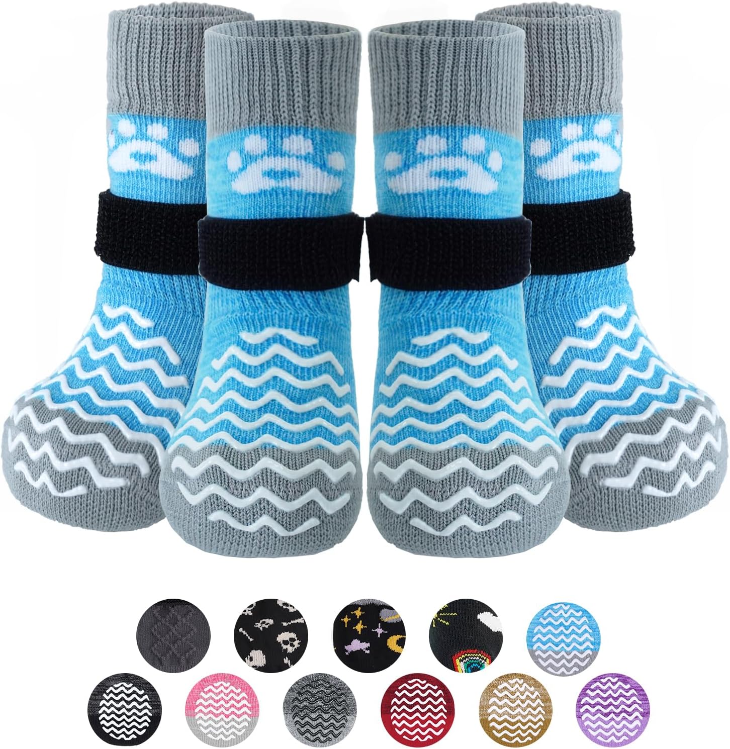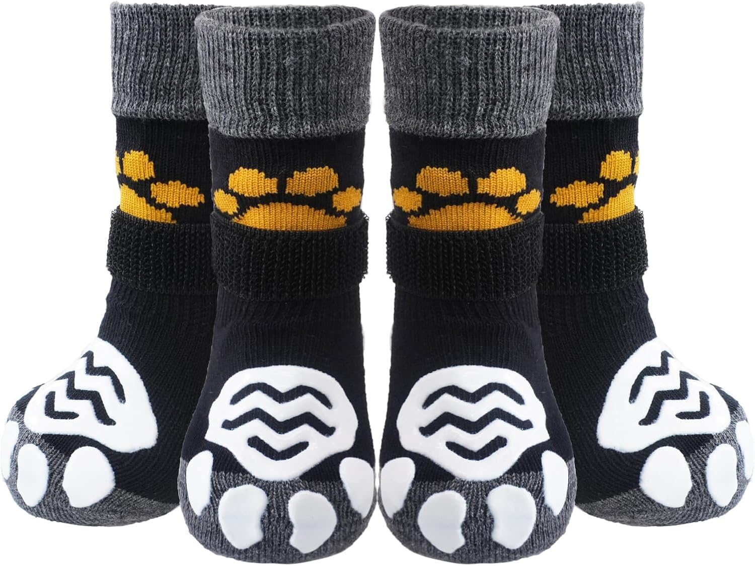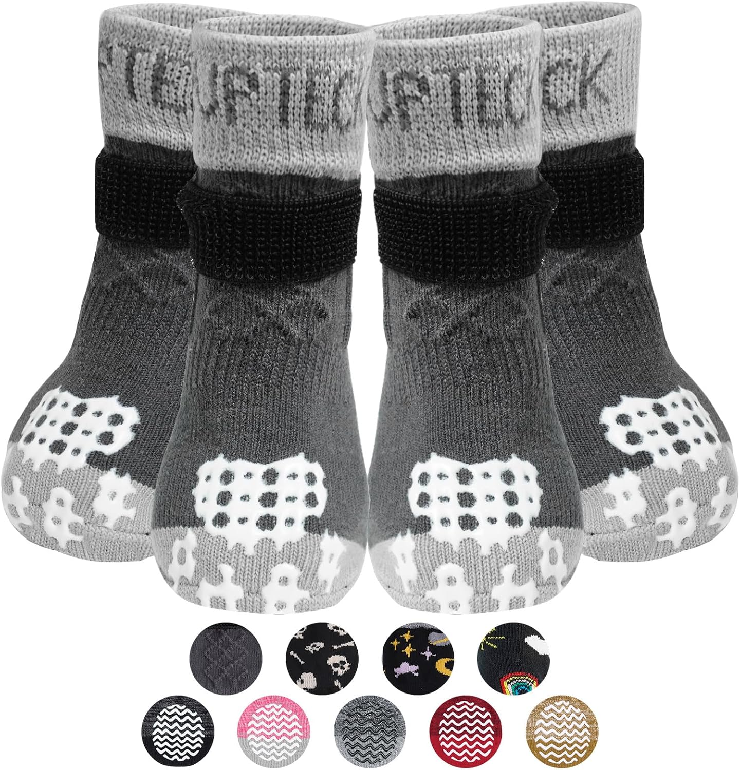 PUPTECK Anti Slip Dog Socks 2 Pairs with Double Grippers for Hardwood Floors, Shoes for Hot/Cold Pavement, Boots & Paws Protectors to Prevent Licking, Traction Booties for Senior Small Large Dogs