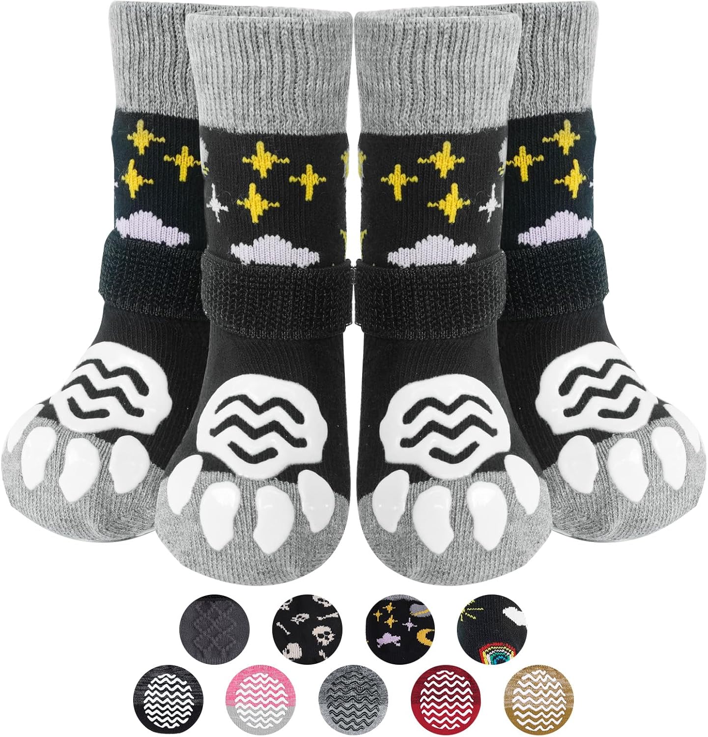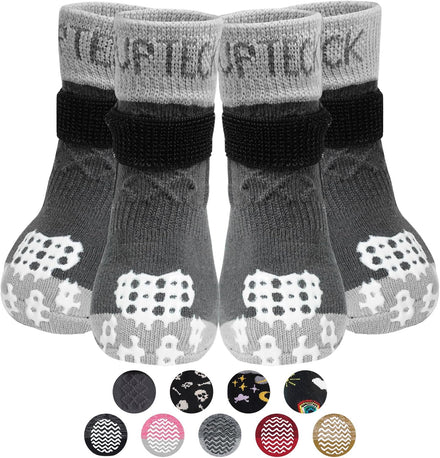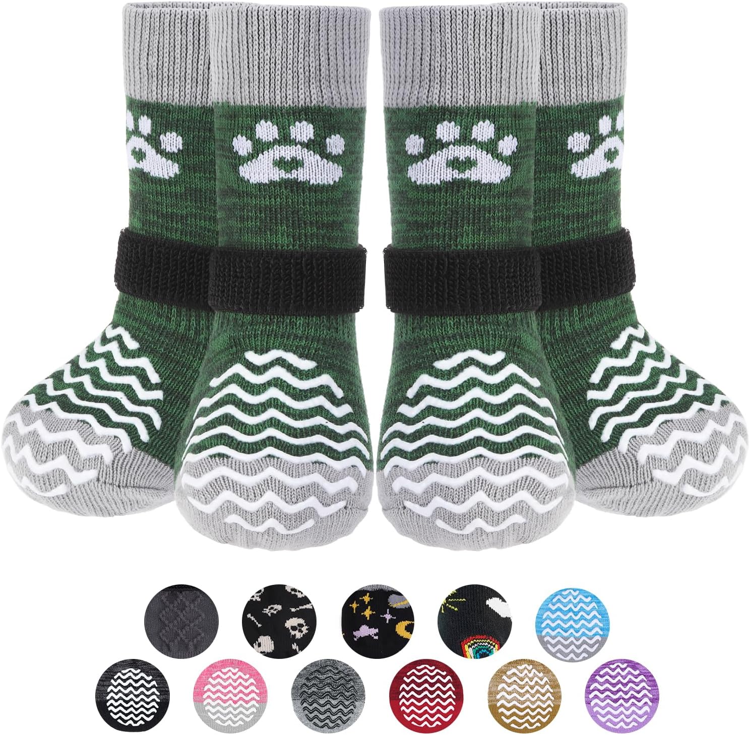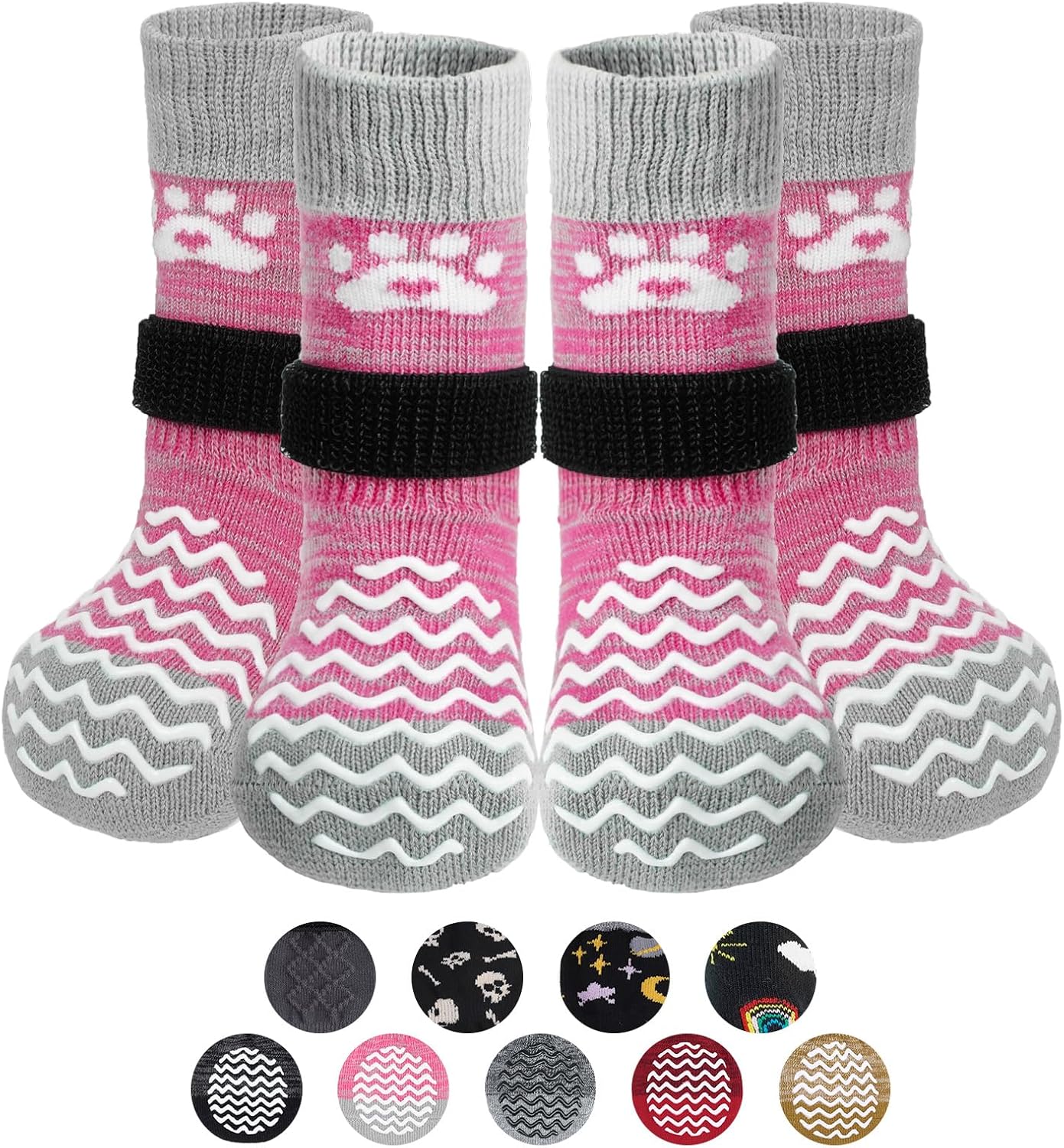 PUPTECK Anti Slip Dog Socks 2 Pairs with Double Grippers for Hardwood Floors, Shoes for Hot/Cold Pavement, Boots & Paws Protectors to Prevent Licking, Traction Booties for Senior Small Large Dogs