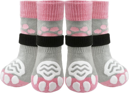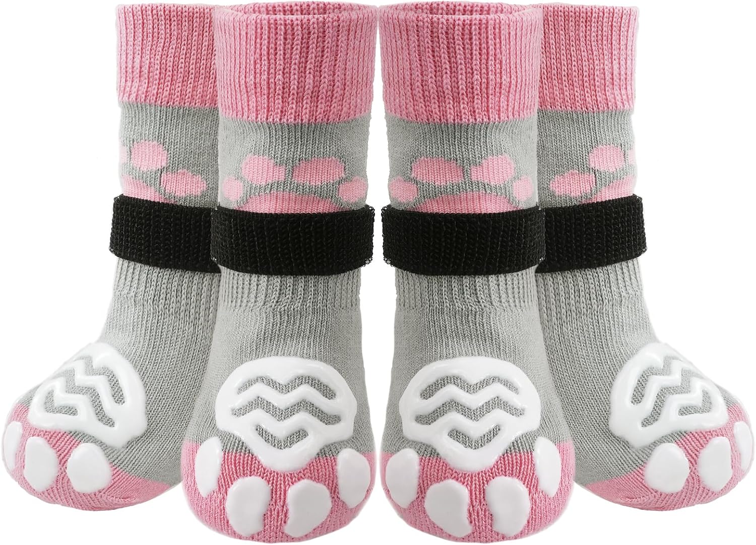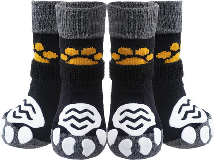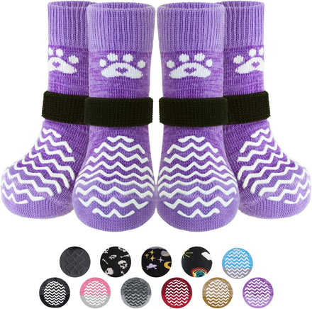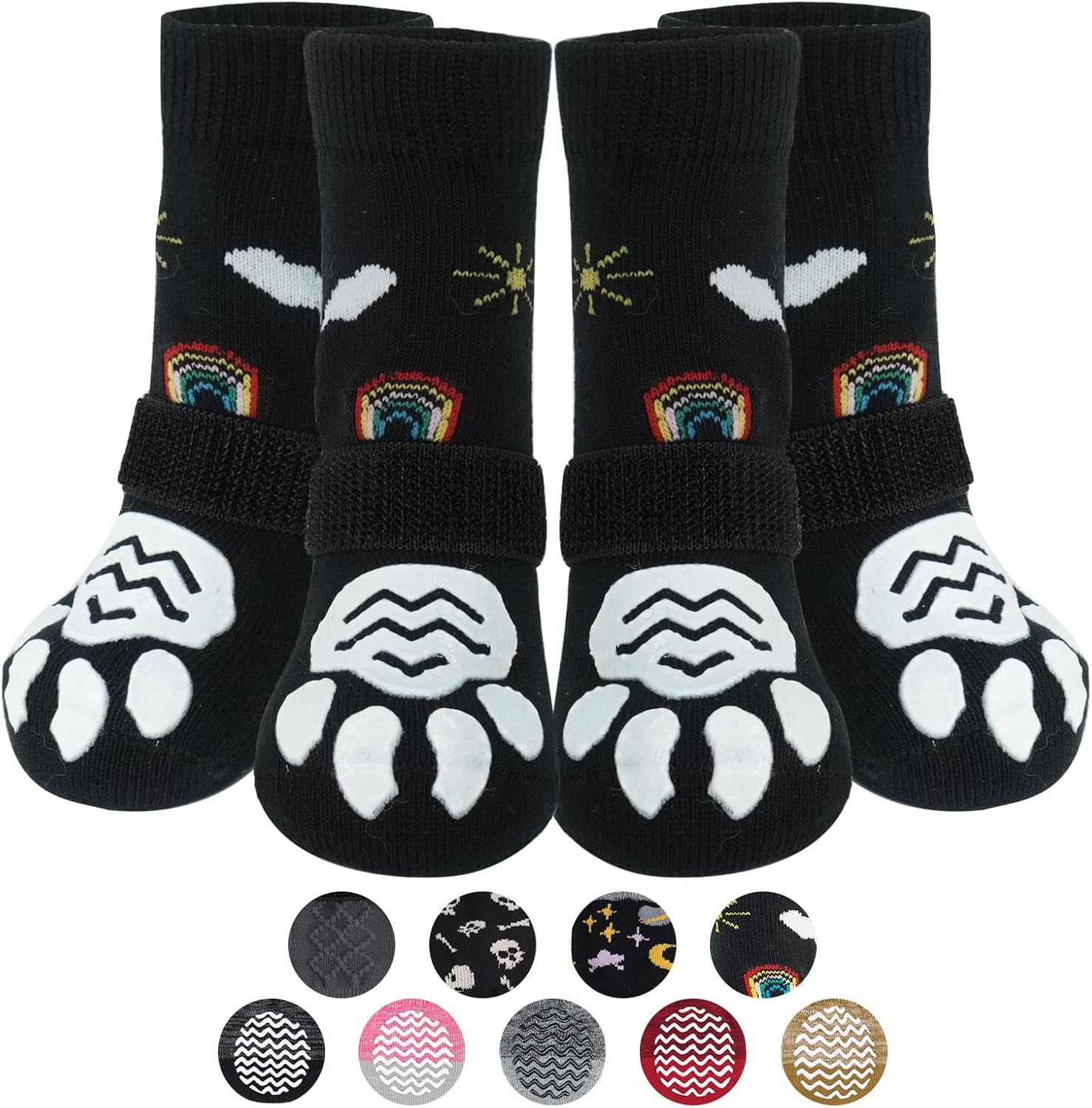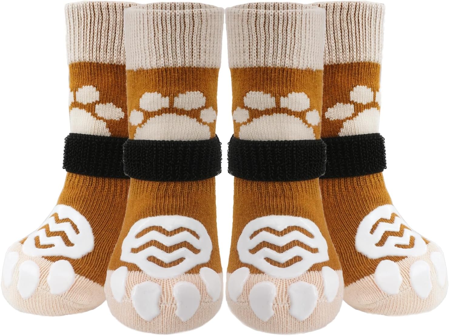 PUPTECK Anti Slip Dog Socks 2 Pairs with Double Grippers for Hardwood Floors, Shoes for Hot/Cold Pavement, Boots & Paws Protectors to Prevent Licking, Traction Booties for Senior Small Large Dogs