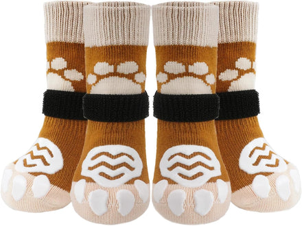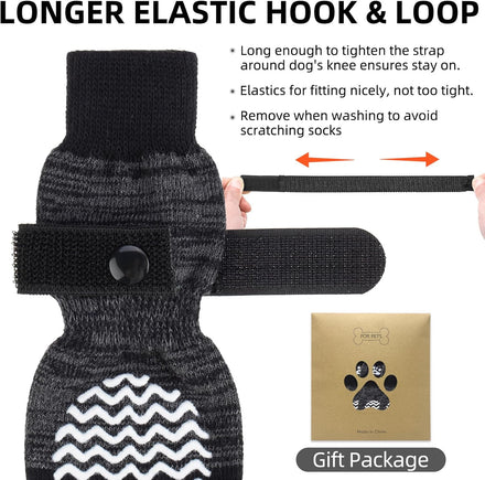 Anti-Fall Off: Dog socks falling off is a concern for many owners. Therefore, we have designed the dog socks with a tightening band, as well as an elasticized cuff. There are also magic strips to easily adjust the elasticity so that the dog socks always stay on the dog's legs and won't fall off even when running. But don't fix it too tightly, makes your dogs feel good