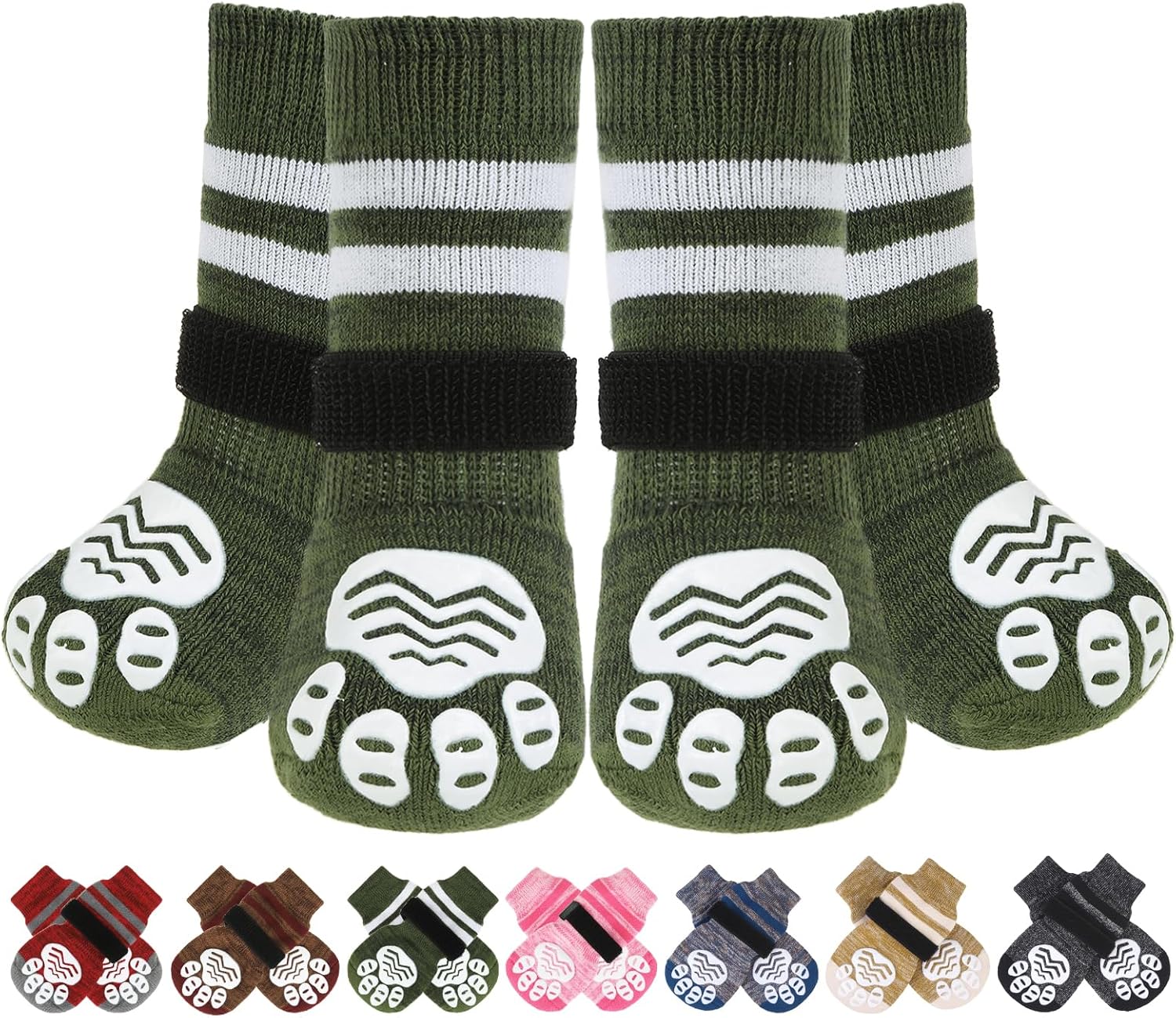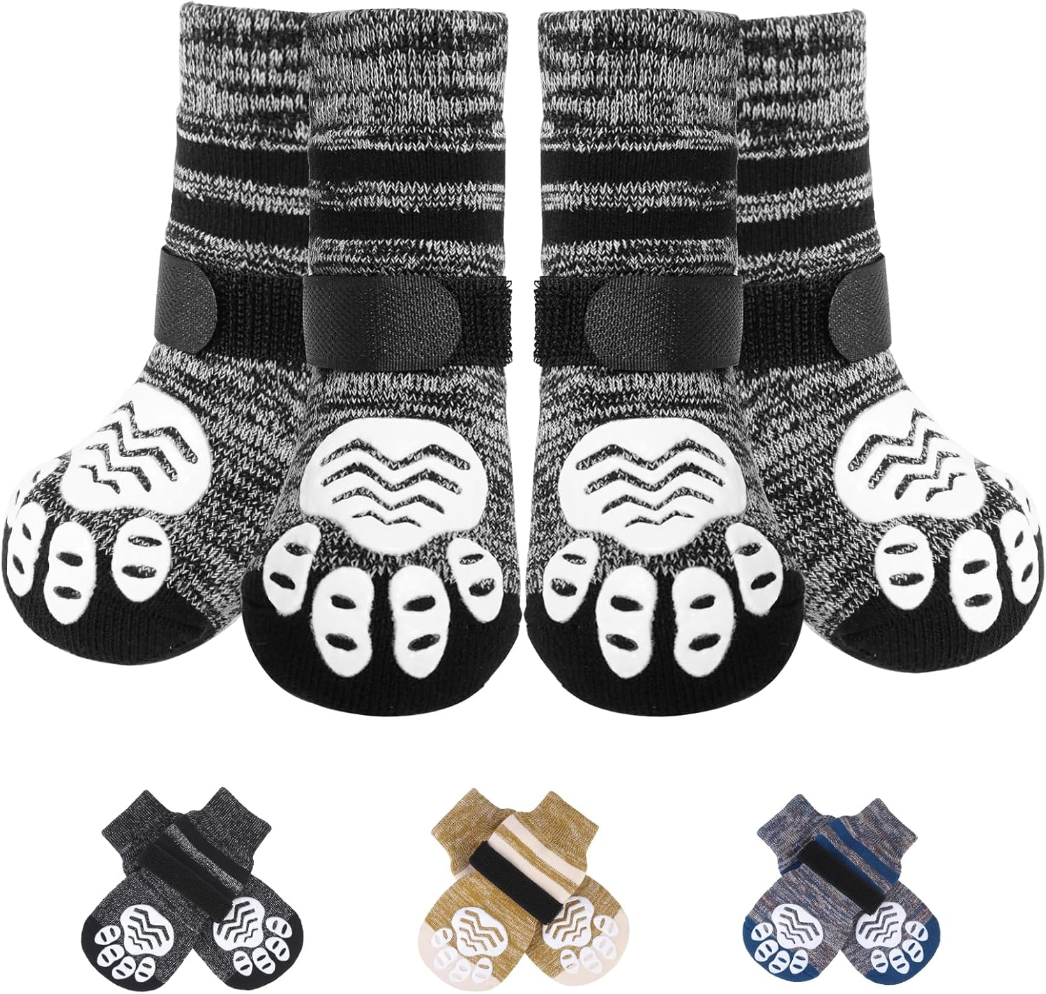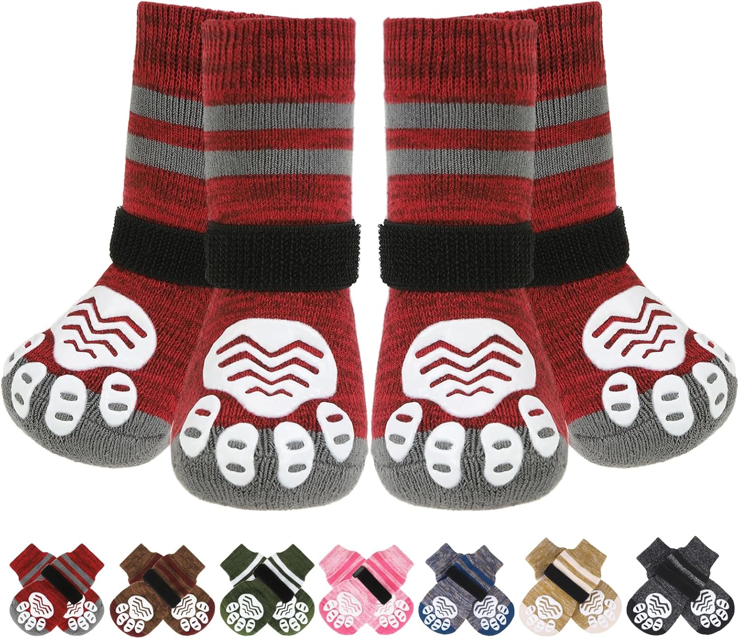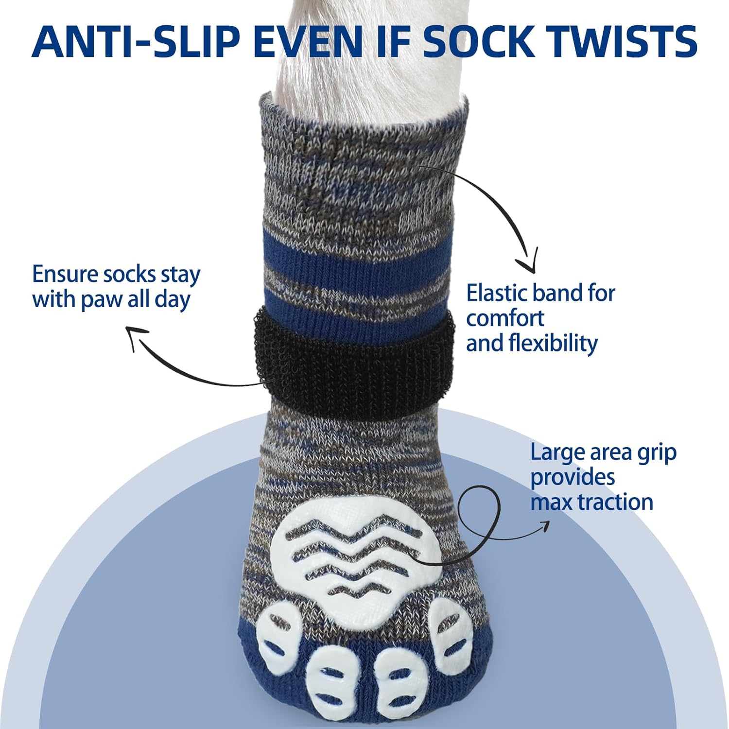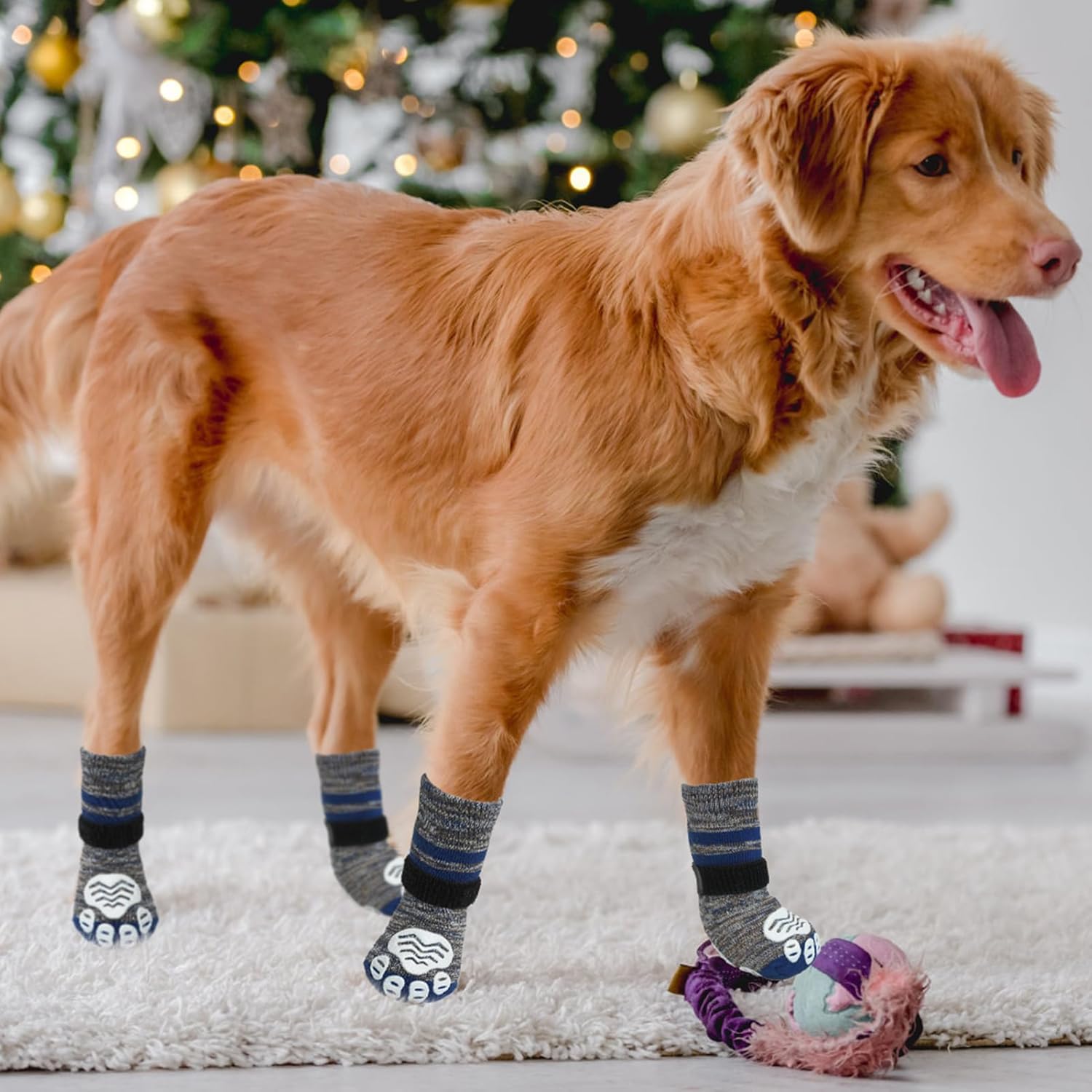 PUPTECK Anti-Slip Dog Socks with Double Sides Grips Booties for Medium Large Dogs Hardwood Floors Prevents Licking, Dog Shoes for Cold & Hot Pavement Traction Paw Protector for Senior Dogs