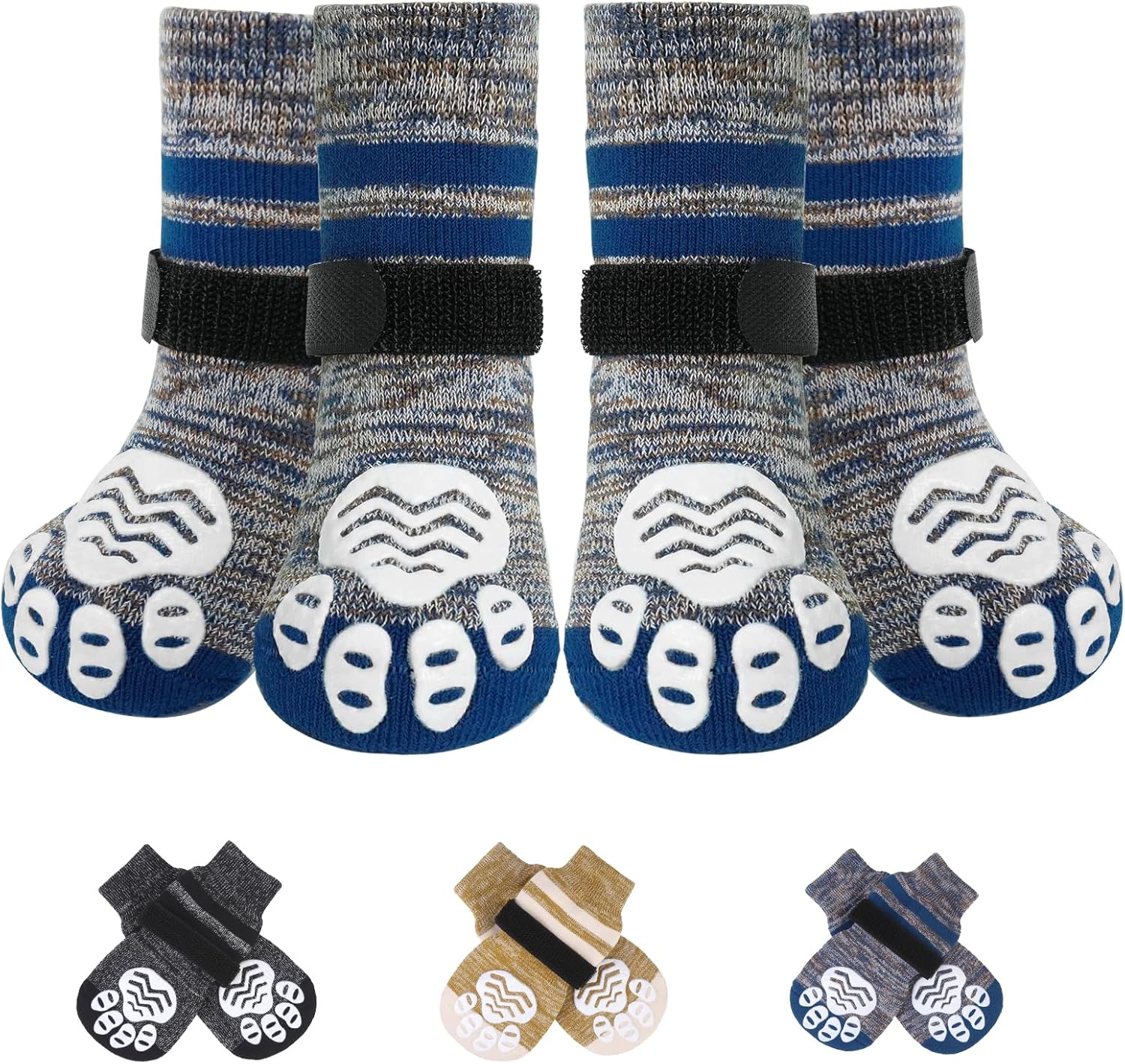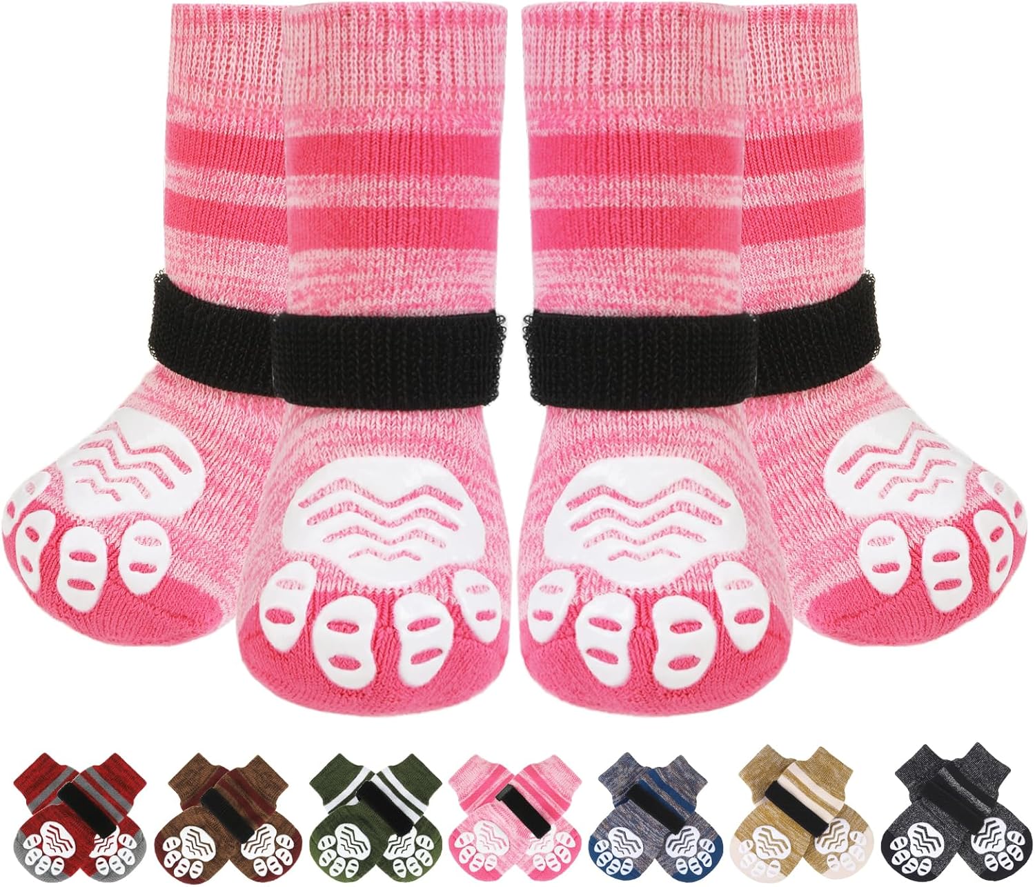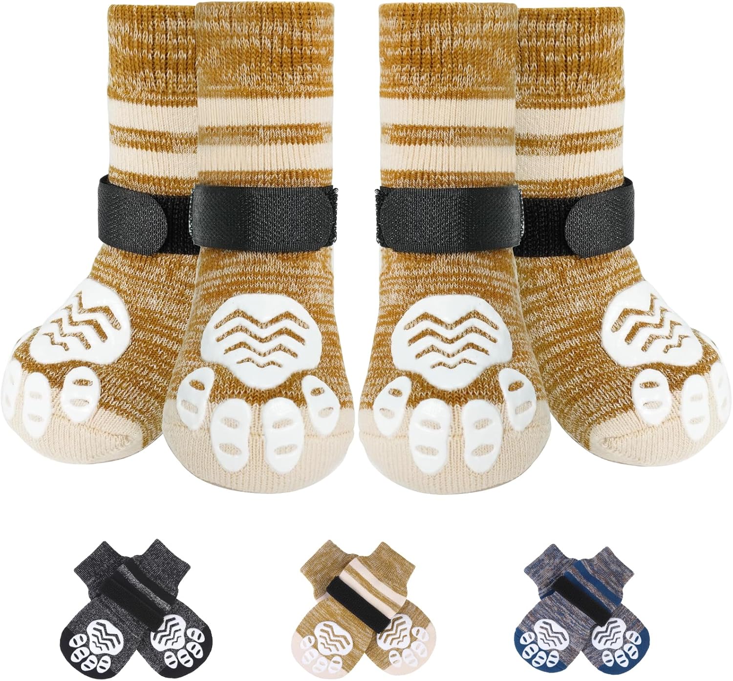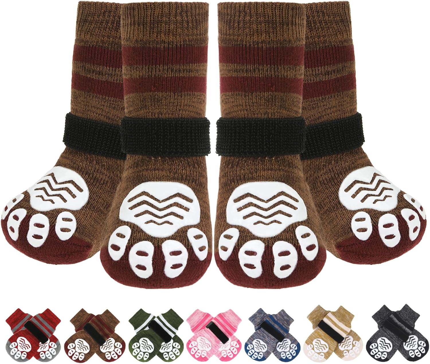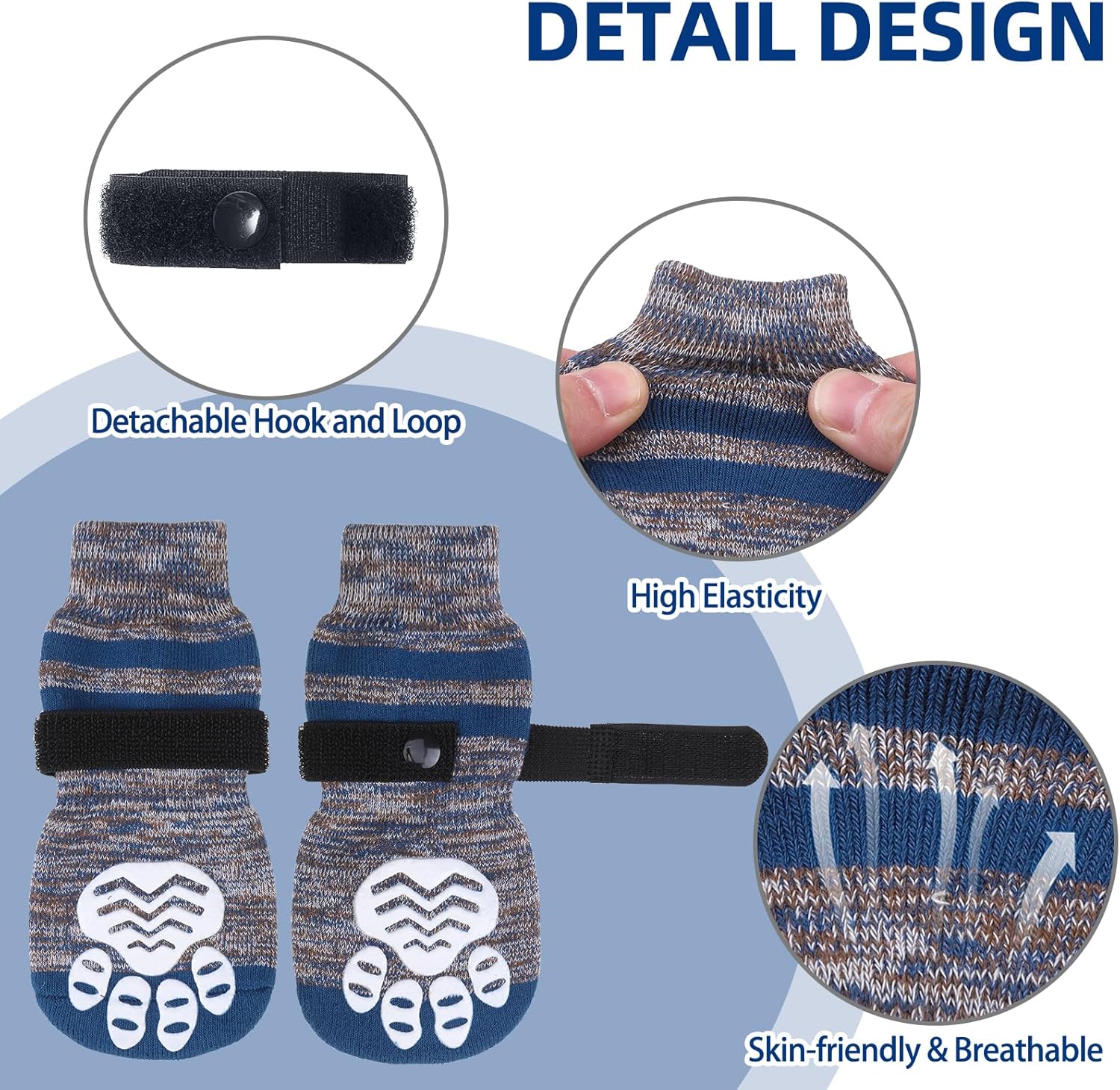 PUPTECK Anti-Slip Dog Socks with Double Sides Grips Booties for Medium Large Dogs Hardwood Floors Prevents Licking, Dog Shoes for Cold & Hot Pavement Traction Paw Protector for Senior Dogs