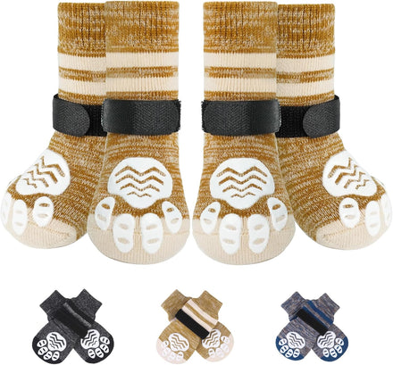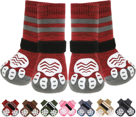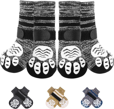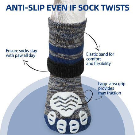 The Function of Dog Socks: In addition to giving better traction to your dog, dog socks can protect your furniture such as hardwood floors, wooden tables, sofas, etc. from being scratched by your dog's sharp claws. Besides, dog socks protect your dog's paw. It can be against heat on hot pavement, cold and road salt in winter, sore paws, and wear. But also as protection against a torn claw or cuts and wounds, to prevent from licking. These socks are ideal for senior dogs