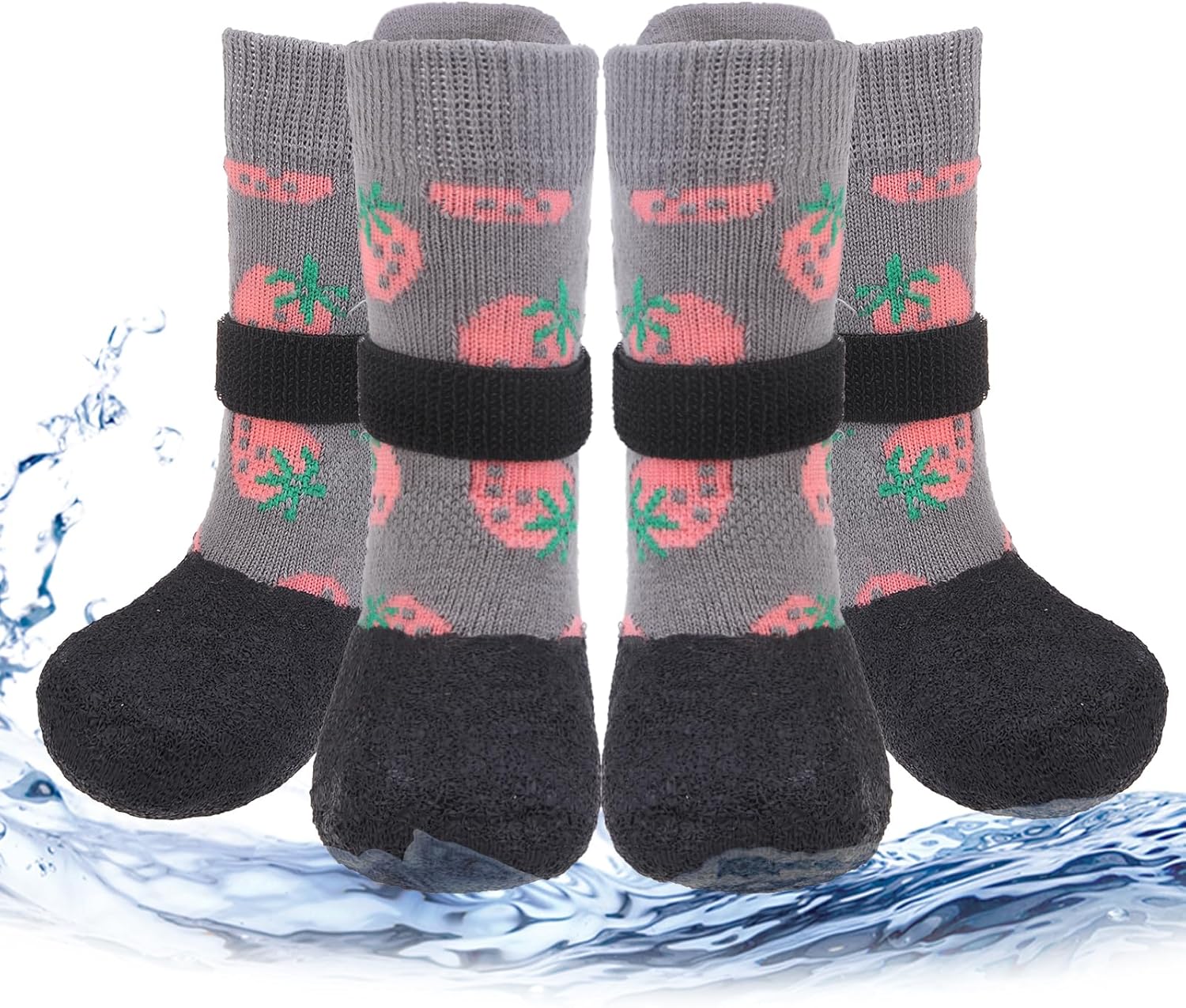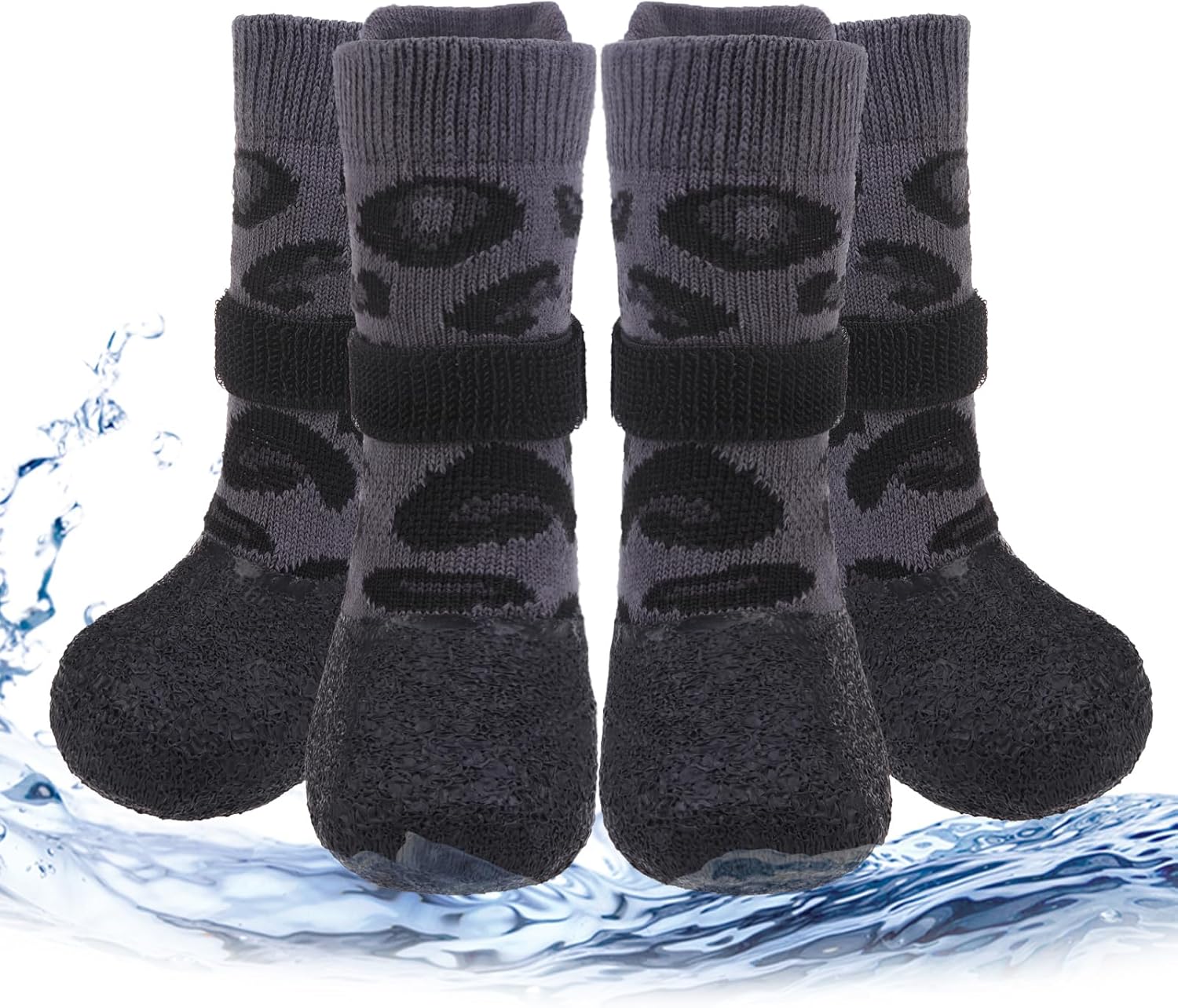 WATERPROOF SHOES: Rubber material on the bottom for waterproof, keeps the dog's feet dry and clean on wet ground on rainy days. Made from soft, stretchy fabrics, breathable and more comfortable than boots. Ideal for all seasons, not easy to fade or tear. Attention: Although shoes are waterproof, it is not recommended for deep water because the knitted part is not waterproof