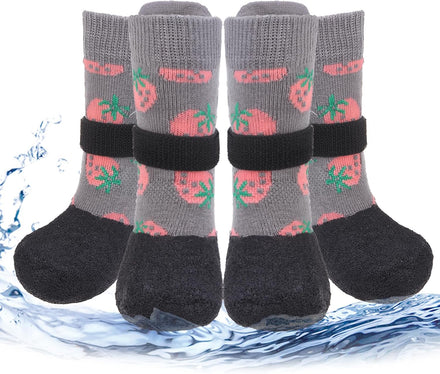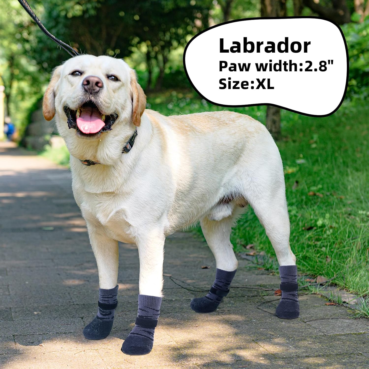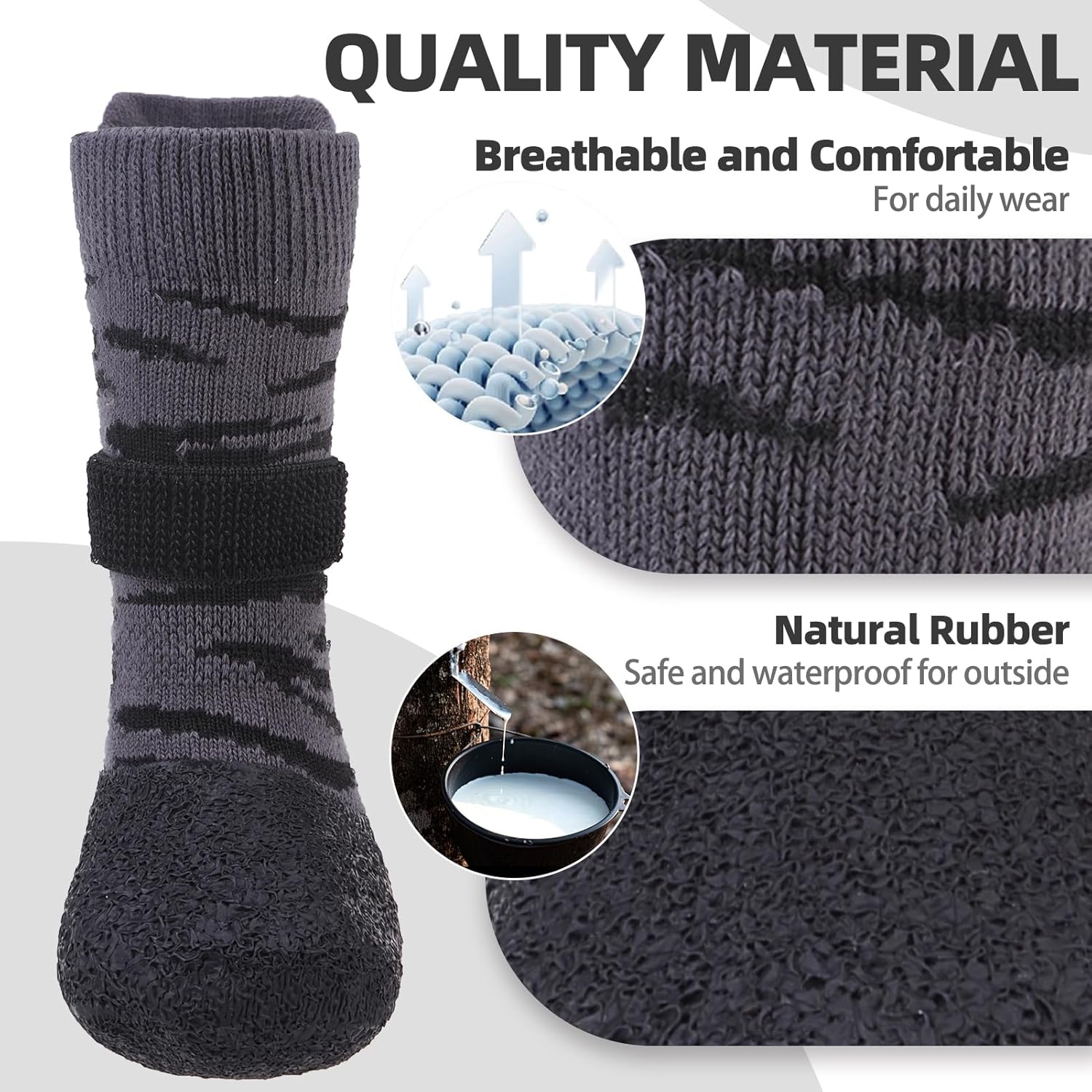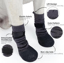 QUICK WEAR & ANTI-FALL-OFF: The socks are soft and stretchy for a firm fit, designed with a small carrying handle to help put on, and easy to wear without disturbing your dog. They are also equipped with a removable hook and loop to hold them in place and prevent them from falling off when the dog is running and playing