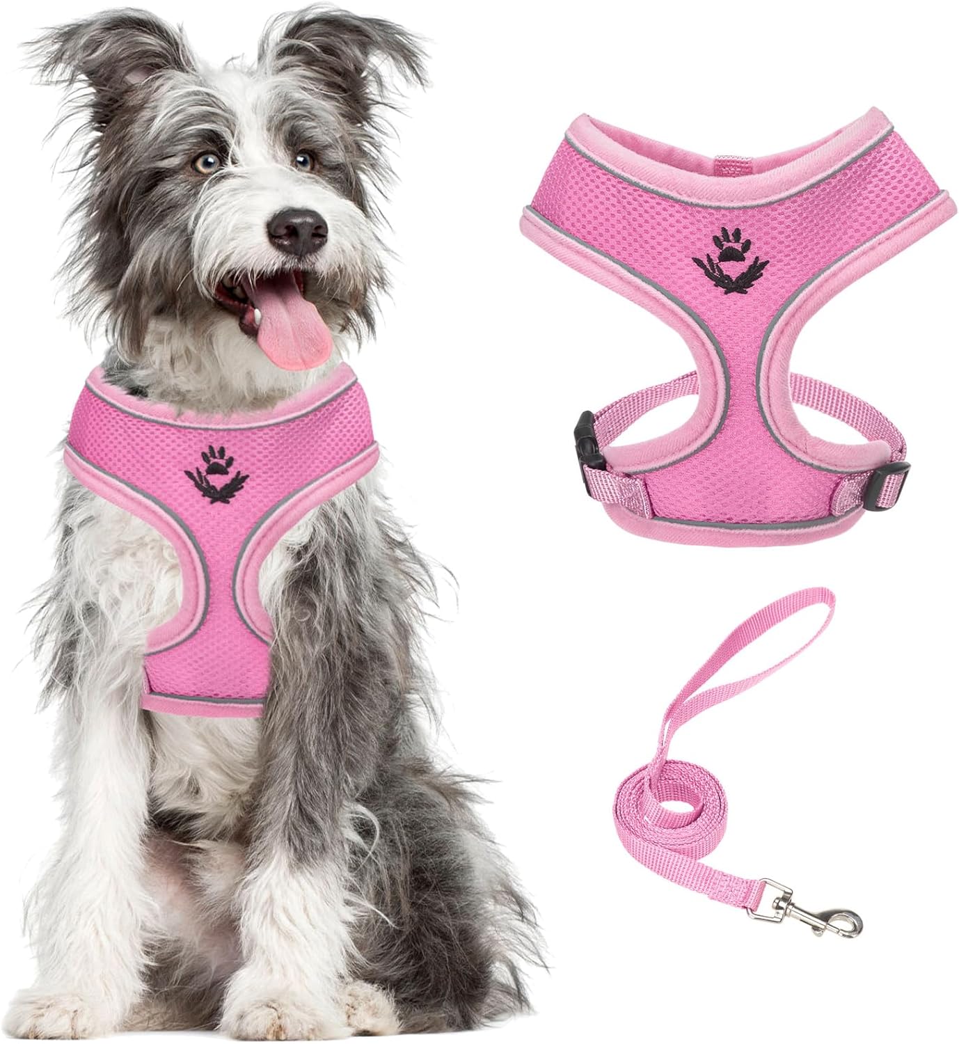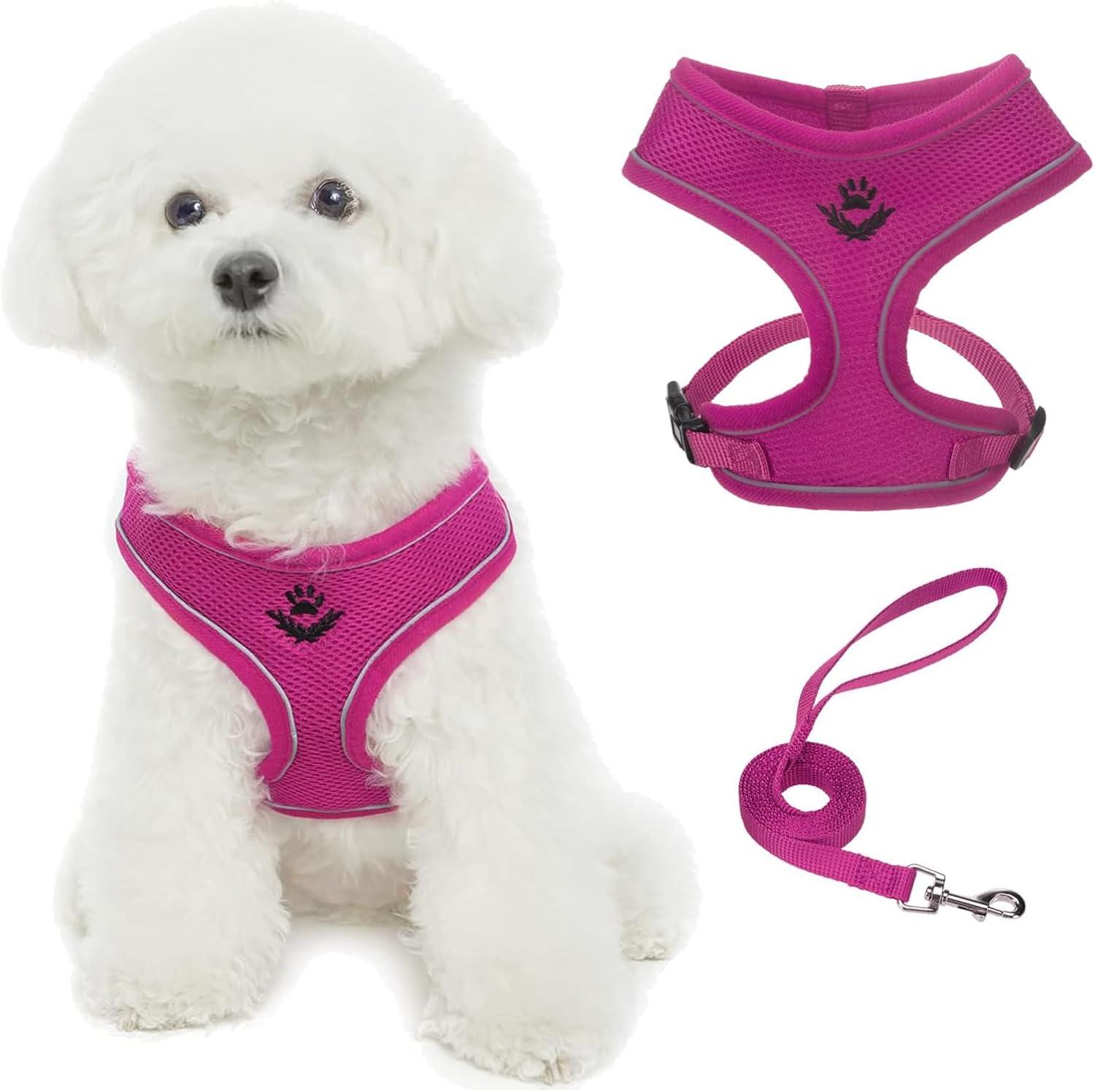 ALL DAY & ALL SEASONS WEARING: This harness leash set is very lightweight, soft, and breathable, even after a full day of wear, it won't make your dog feel uncomfortable and will still stay active. Besides, the harness fits four seasons wearing, keeps the dog cool in summer, and it offers warmth to your dog in winter, in the harness outside you can give the dog to wear another piece of clothing is also possible