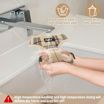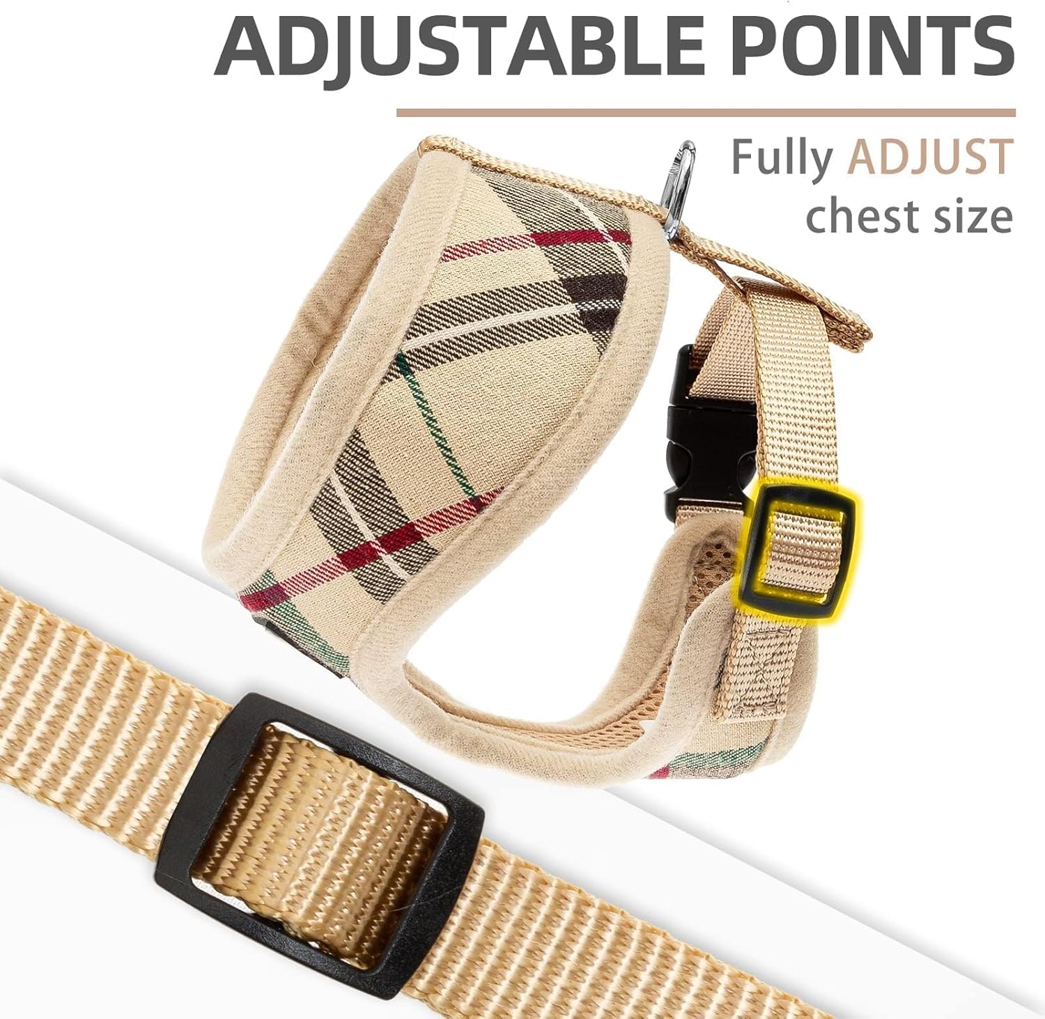 DIFFERENT DESIGN: The harness is adopted with a plaid pattern which is designed by our internal brand team, so it's unique and very different from other normal harnesses. This plaid pattern looks both classic and stylish and is never out of date. It's great for everyday walking or going to a holiday party. It makes your furry friend look so lively and cute
