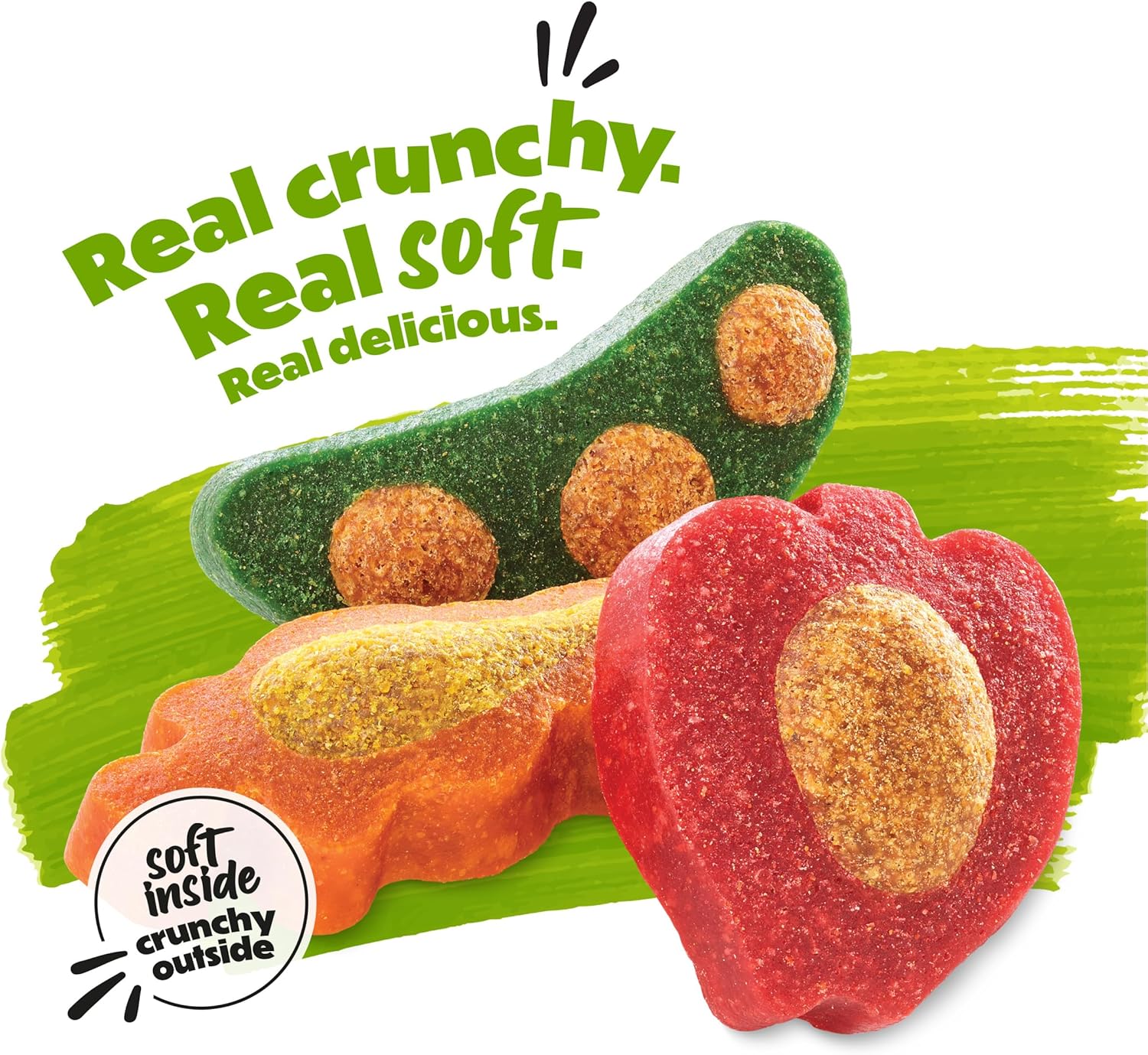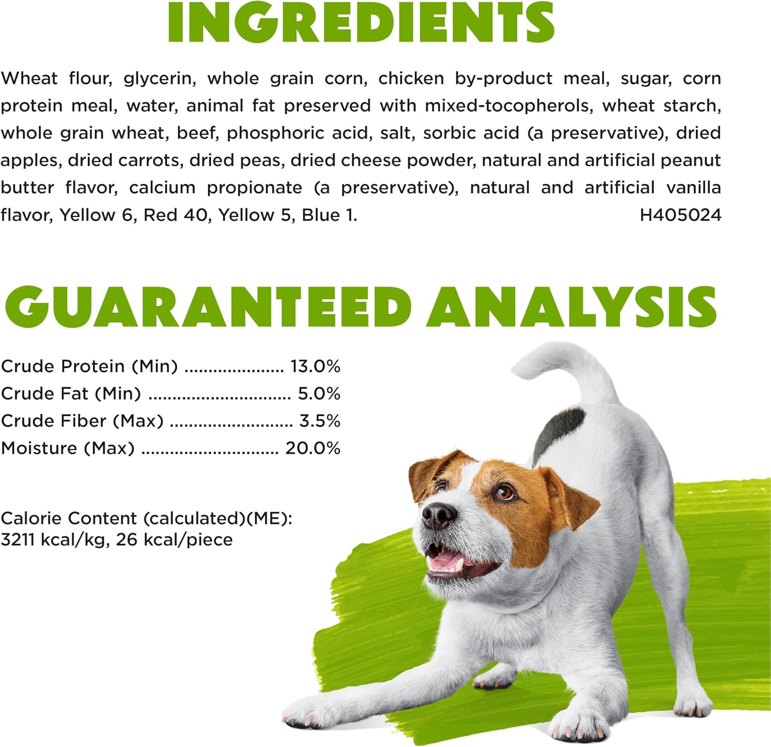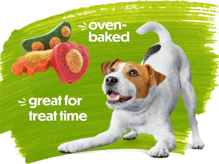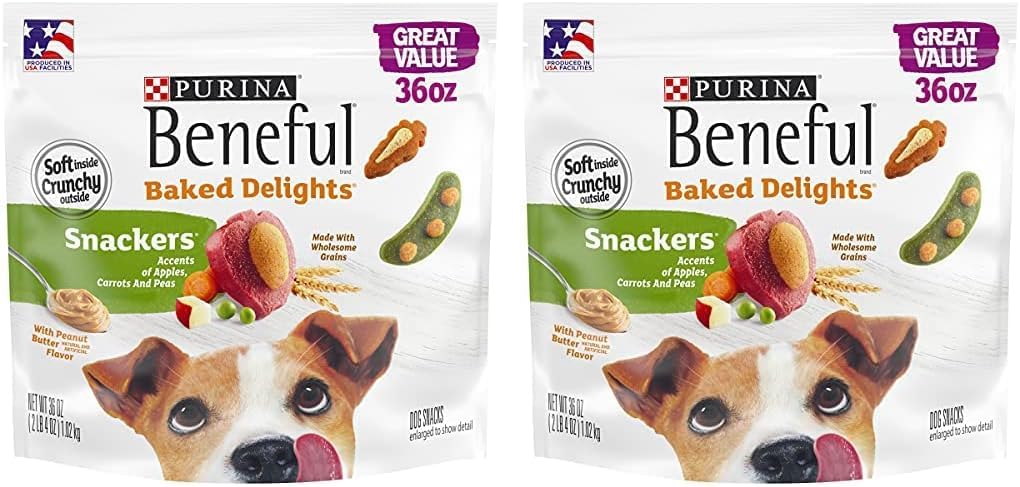 Make your dog's snack time even more exciting by serving Purina Beneful Baked Delights Snackers With Peanut Butter Flavor dog treats. These Purina Snackers treats are oven baked to give them a crunchy exterior and a great taste dogs love. Savory, soft centers provide a delightful contrast to the crunchy outside. These Snackers with peanut butter and cheese flavors are made with wholesome grains and accents of apples, carrots and peas for a between-meal snack or well-deserved training reward you feel good about serving. Fun, colorful fruit and vegetable shapes add a whimsical touch to snacking. Purina Beneful Baked Delights Snackers dog treats are produced in U.S. facilities and undergo regular quality and safety checks for your peace of mind. Let your best buddy know just how much you appreciate him with Purina Beneful Baked Delights Snackers dog treats.