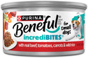 - Purina Beneful IncrediBites is made specially for small dogs in 3 oz. cans and proudly produced in Purina-owned, U.S. facilities