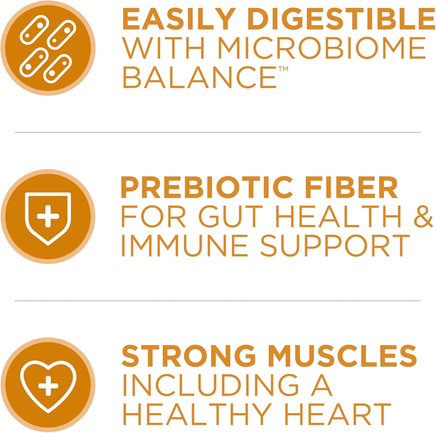 - Purina ONE chicken and rice dog food offers a microbiome balance and a SmartBlend of high-quality ingredients, including prebiotic fiber for dogs, to help your dog live his best life