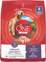 Make your senior dog happy with Purina ONE +Plus Vibrant Maturity Adult 7+ Formula dry dog food. MCT-rich vegetable oil nourishes and promotes mental sharpness and showed an increased average activity level over 20 percent. Chicken is the number 1 ingredient, helping create a high protein dog food that maintains his strong muscles, including his healthy heart. Four antioxidant sources in this Purina dog food support a strong immune system, and natural sources of glucosamine for dogs help support his joints. This premium dog food recipe supplies 100 percent complete and balanced nutrition for adult dogs. Plus, this Purina ONE senior dog food is made with 0 percent fillers, and the dog dry food features a highly digestible formula. Know your pal is getting a dog food kibble full of the taste and texture he loves and a wholesome recipe with no artificial flavors or preservatives.