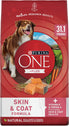 - Purina ONE Skin & Coat dog food includes four antioxidant sources for a strong immune system and natural glucosamine sources for joint health