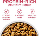 - Calcium and deliciously crunchy bites in this dog food kibble support strong teeth and healthy gums