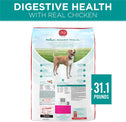 Fill your dog's bowl with Purina ONE +Plus Natural Digestive Health Chicken and Rice Formula with added vitamins, minerals and nutrients adult dry dog food. Real chicken is the first ingredient, and the protein-rich morsels support his muscles, including a healthy heart. Purina ONE sensitive stomach dog food is highly digestible and contains a SmartBlend of high-quality ingredients enriched with probiotics to support digestive wellness. We make our digestive care dog food with omega-6 fatty acids to nourish his skin and coat, and a blend of four antioxidants, including vitamins E and A, plus the minerals zinc and selenium help support immune health. Your dog is getting a Purina dog food with no artificial flavors or preservatives and no fillers. Plus, the great-tasting kibble has calcium to support your dog's strong teeth and healthy gums. Ensure your dog gets 100 percent complete and balanced nutrition crafted by a veterinarian-recommended brand with this tasty dog dry food.