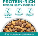 - Real meat Purina ONE dry dog food recipe contains a SmartBlend of purposeful ingredients and no artificial flavors or preservatives and zero fillers