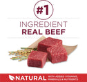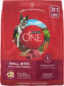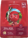 Feed outstanding nutrition with Purina ONE Natural Small Bites Beef and Rice Formula adult dry dog food with added vitamins, minerals and nutrients. What are the ingredients in Purina ONE? The SmartBlend of high-quality ingredients starts with real beef for a high protein dog food that helps support strong muscles, including a healthy heart. With 0 percent fillers, each high-quality ingredient in our beef dry dog food serves a purpose. Quality carbohydrate sources in the real meat dog food provide healthy energy, and prebiotic fiber for dogs promotes gut health and immune support. The digestive care dog food has natural sources of glucosamine to support joint health for dogs, and crunchy dog food kibble with added calcium helps promote strong teeth. Serve meals big and small dogs love with Purina ONE Small Bites dog food, and check out the bag for the Purina ONE feeding chart, calories in dog food, dog food ingredients list and instructions on how to switch dog food.