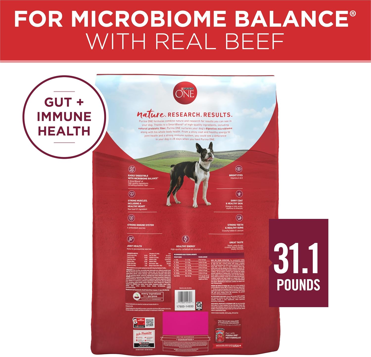 - Beef dog food delivers a Purina ONE SmartBlend of high-quality ingredients, including carbohydrate sources for healthy energy and natural sources of glucosamine for dogs to promote joint health
