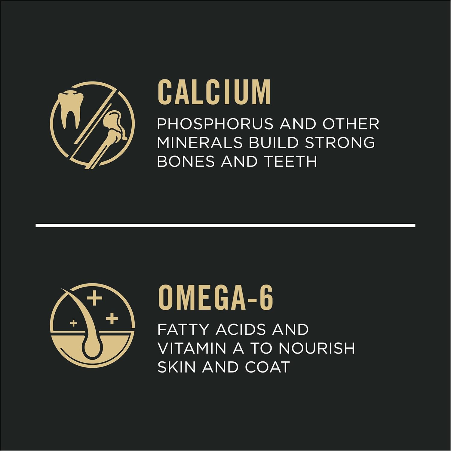 - Vitamin A and omega-6 fatty acids to nourish skin and coat
