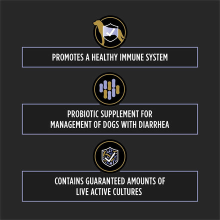 - Probiotic supplement for the dietary management of puppies and adult dogs with diarrhea