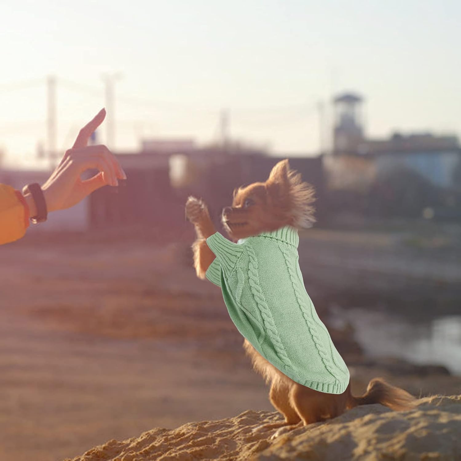 Queenmore Small Dog Pullover Sweater, Cold Weather Cable Knitwear, Classic Turtleneck Thick Warm Clothes for Chihuahua, Bulldog, Dachshund, Pug, Yorkie (Green, Small)