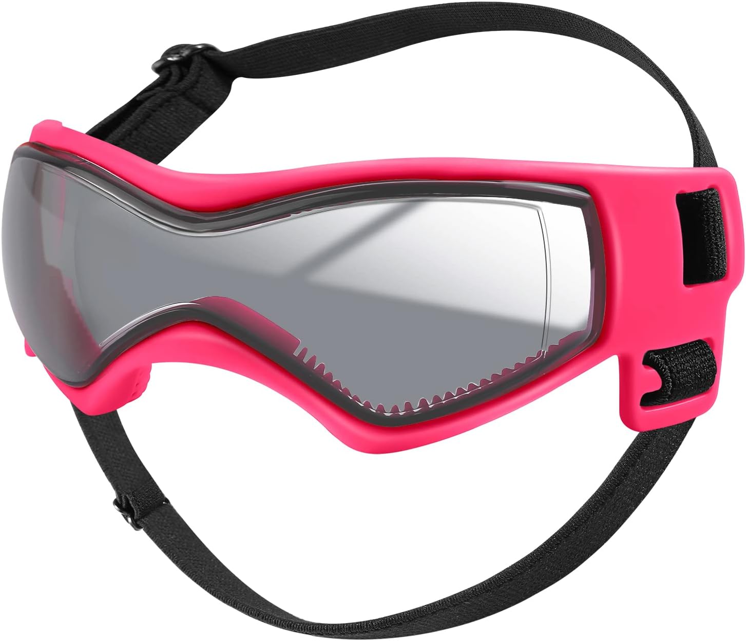 - Size: The dog goggles have adjustable strap, soft frame & lightweight. Head strap elastic 13.5"-18", chin strap elastic 6"-9". Suitable for small and medium dogs such as corgi, poodles, boston, terrier, pitbull, pug, schnauzer, yorkshire, retrievers, dober, etc. NOT suitable for small miniature pets and Giant Dog. Please measure your dog before purchasing.