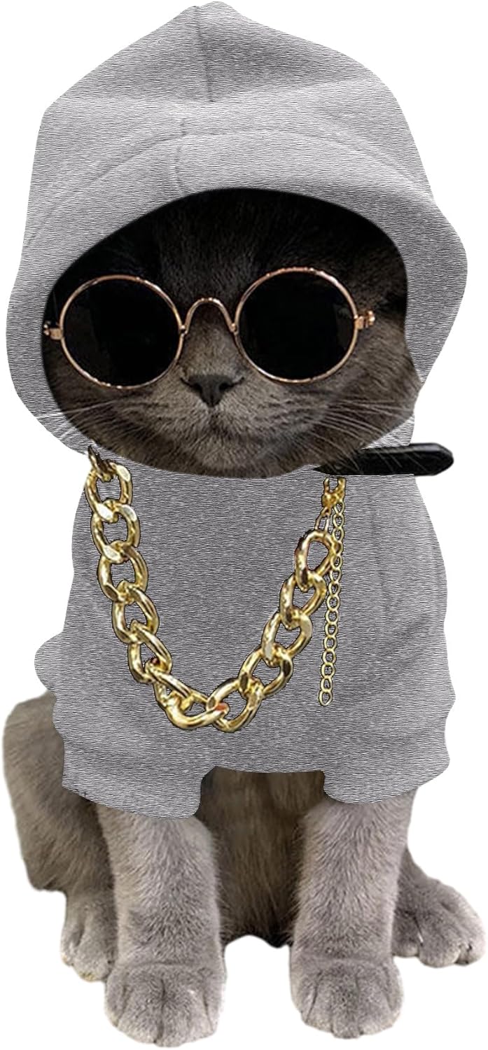 QWINEE 3Pcs Dog Hoodie Cat Apparel Dog Custume Set with Necklace and Sunglasses Pet Clothes for Puppy Small Medium Dogs Cats Multicolor S