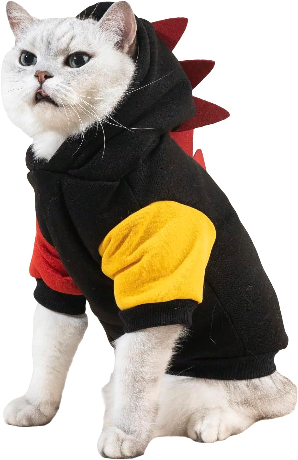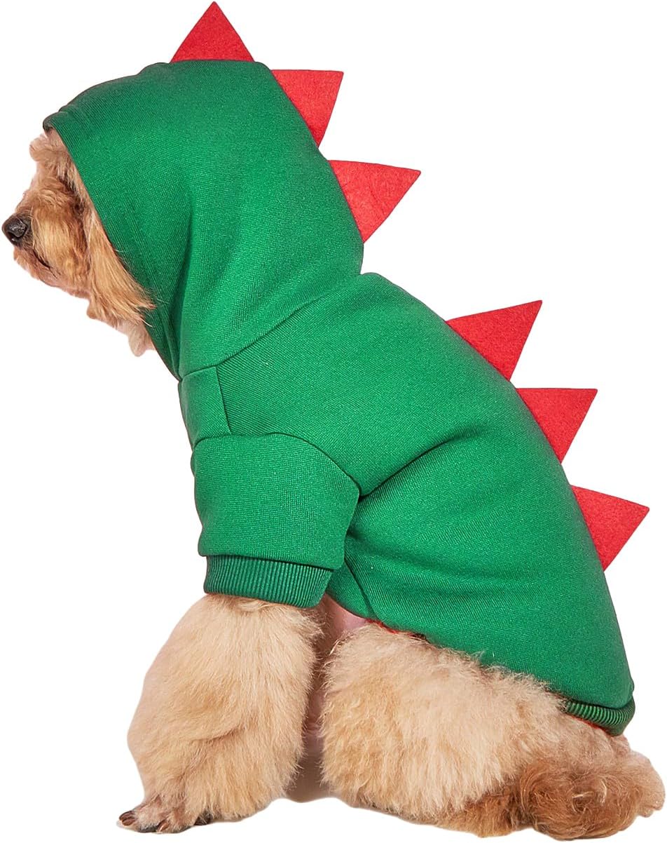 • Fashionable dinosaur shape design and hoodie elements can exude pet's vitality