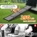 - 𝐃𝐮𝐫𝐚𝐛𝐥𝐞 𝐚𝐧𝐝 𝐒𝐭𝐚𝐛𝐥𝐞 𝐈𝐫𝐨𝐧-𝐀𝐥𝐮𝐦𝐢𝐧𝐮𝐦 𝐁𝐮𝐢𝐥𝐝: Crafted from high-quality iron and aluminum, this dog car ramp can support up to 250 lbs, making it suitable for dogs of all sizes. Reinforced with double-tightened screws and a sturdy structure, it eliminates wobbling and ensures a safe, stable climb every time.