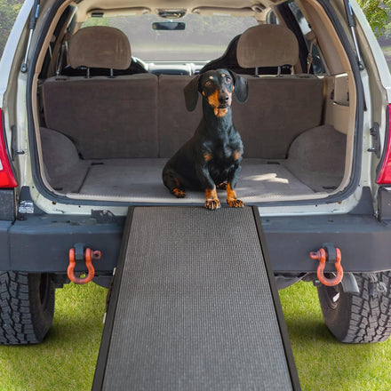 Más importante para la seguridad y comodidad de su perro es la superficie que cubre la rampa para perros. La mayoría de las marcas usan una superficie alfombrada para esto, pero puede ser bastante resbaladiza y se ensucia rápidamente. Es por eso que decidimos una mejor alternativa: nuestra rampa para perros utiliza una superficie de tracción antideslizante hecha de goma antideslizante, que proporciona una tracción increíble para las patas del perro. Esto significa que no hay deslizamiento, sin tensión para tu mascota y un uso general más cómodo y seguro de la rampa para perros.