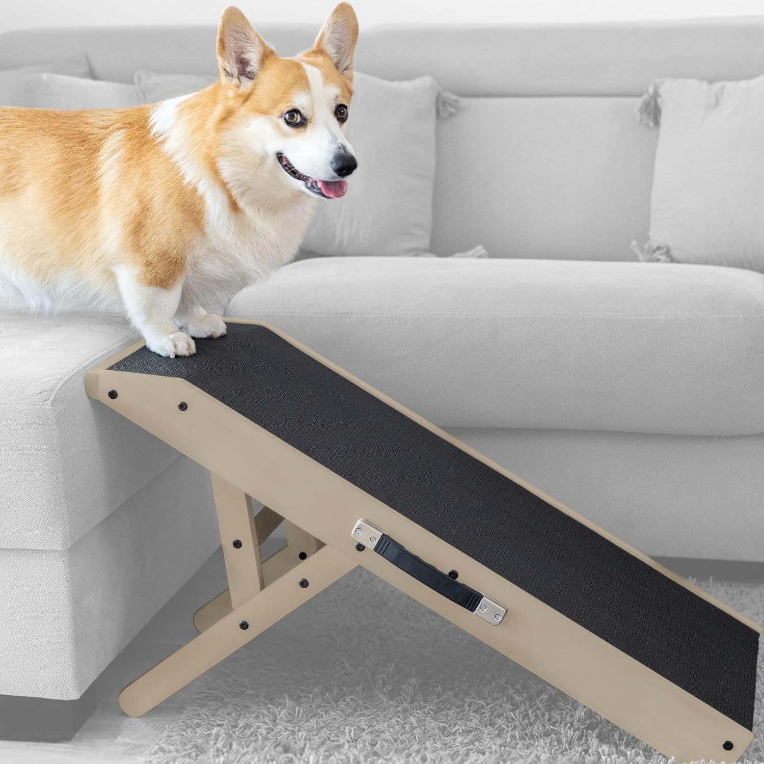 - Altura ajustable: alturas de 20, 18, 16, 13 y 7 pulgadas. Se puede adaptar a sofás, camas o coches. La rampa se pliega a solo 3 pulgadas para un fácil almacenamiento y transporte.