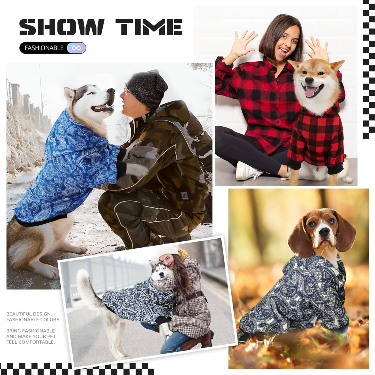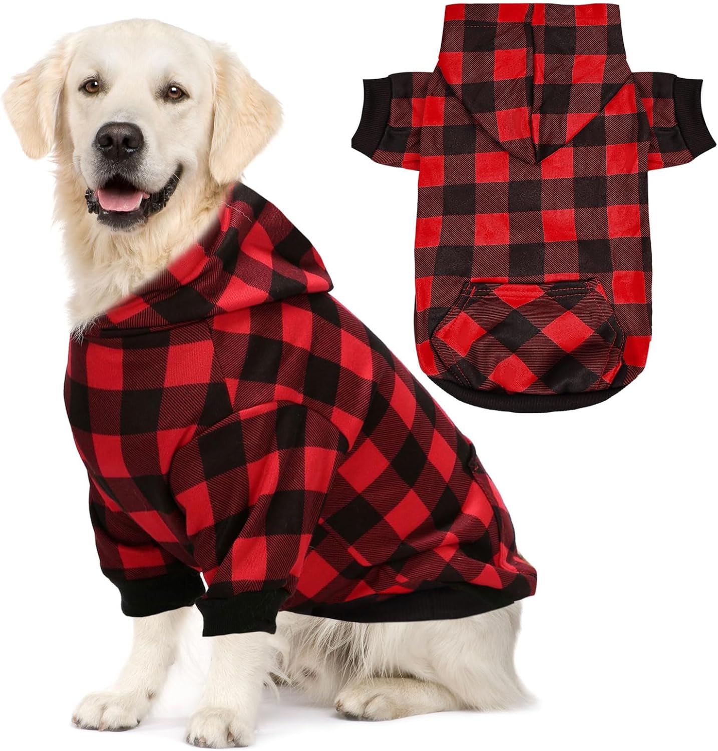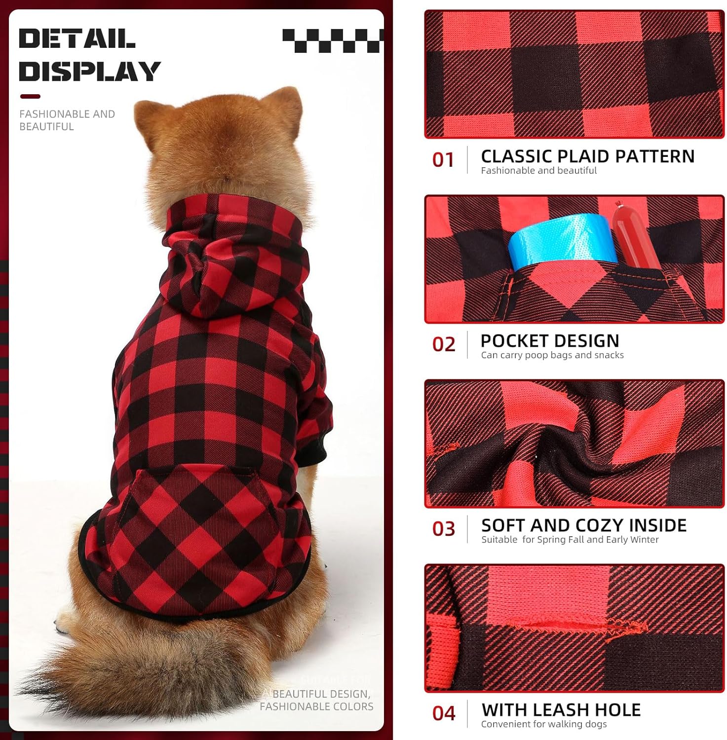 Classic Red Plaid Dog Hoodie:The classic red plaid pattern of the dog hoodie is very fashionable. Warm red shows full of vitality,elegance and gentleman's model.making your lovely pet more charming during spring autumn & winter