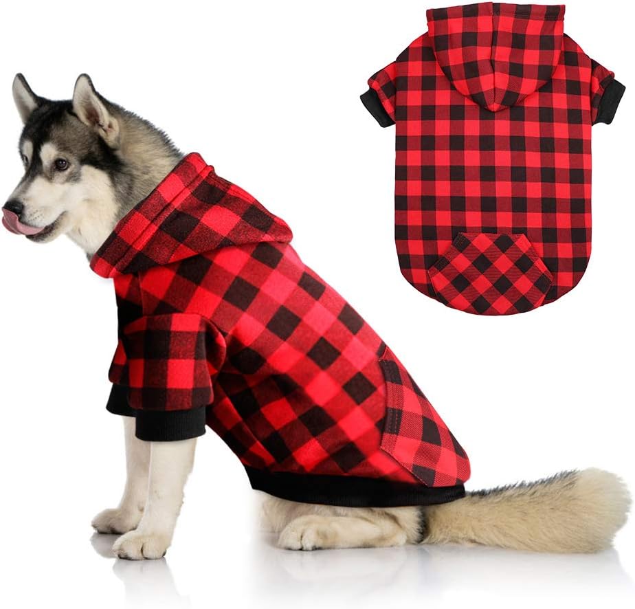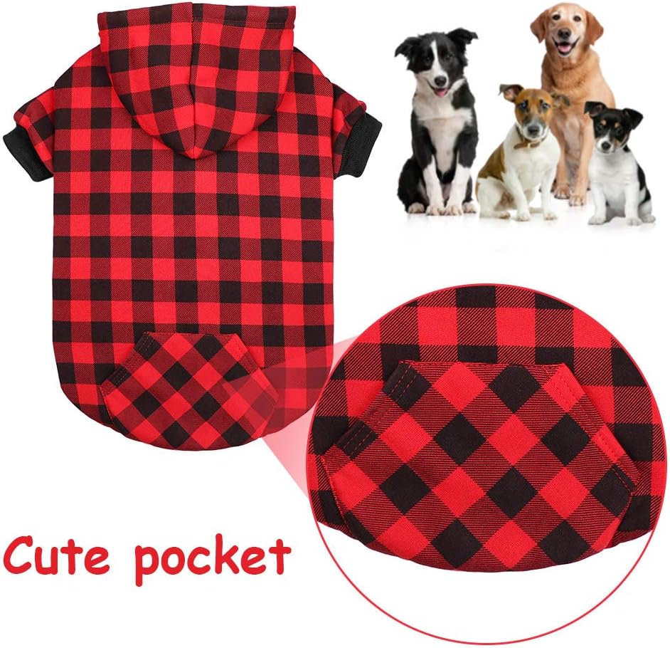 - 【Stylish and Cute Design】Our dog hoodie is made of fashionable plaid fabric. It's a real hoodie with sleeves, hat and pocket. It's perfect for cold months and full of festival atmosphere. It's also necessary for family photos. We're sure your dog will get tons of compliments on walks.