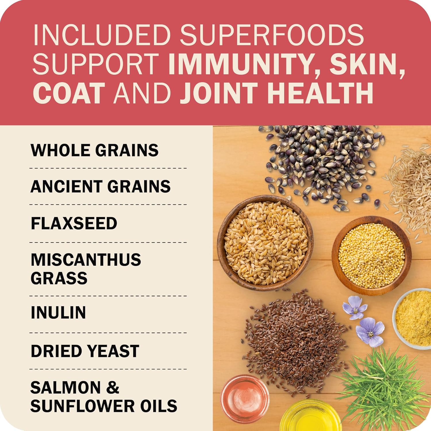 - TRANSPARENT INGREDIENTS: High-quality animal proteins are always the first 5 ingredients for optimal canine nutrition and superfoods like flaxseed, miscanthus grass, and salmon oil are added to support immunity, skin, coat, and joint health
