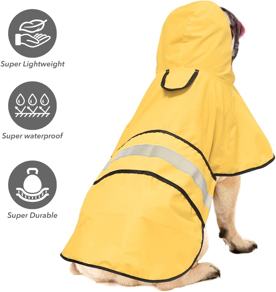 LIGHTWEIGHT & WATERPROOF DOG RAINCOAT - This dog raincoat is made from 100% polyester waterproof fabric, It is lightweight and water-resistant enough to keep your puppy comfortable and dry during walking even in the worst weather conditions, and it’s very durable will be used for a long time.