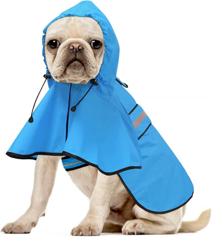 SAFETY REFLECTIVE DOG PONCHO - This dog raincoats design with high visibility reflective strips in the middle of the belly helps to keep your pet be seen& rescued when you out for a night walking in bad weather days. When a flashlight or strong light shots, the dog coat is highly reflective, which will enable your dog to avoid being hit by a careless driver.