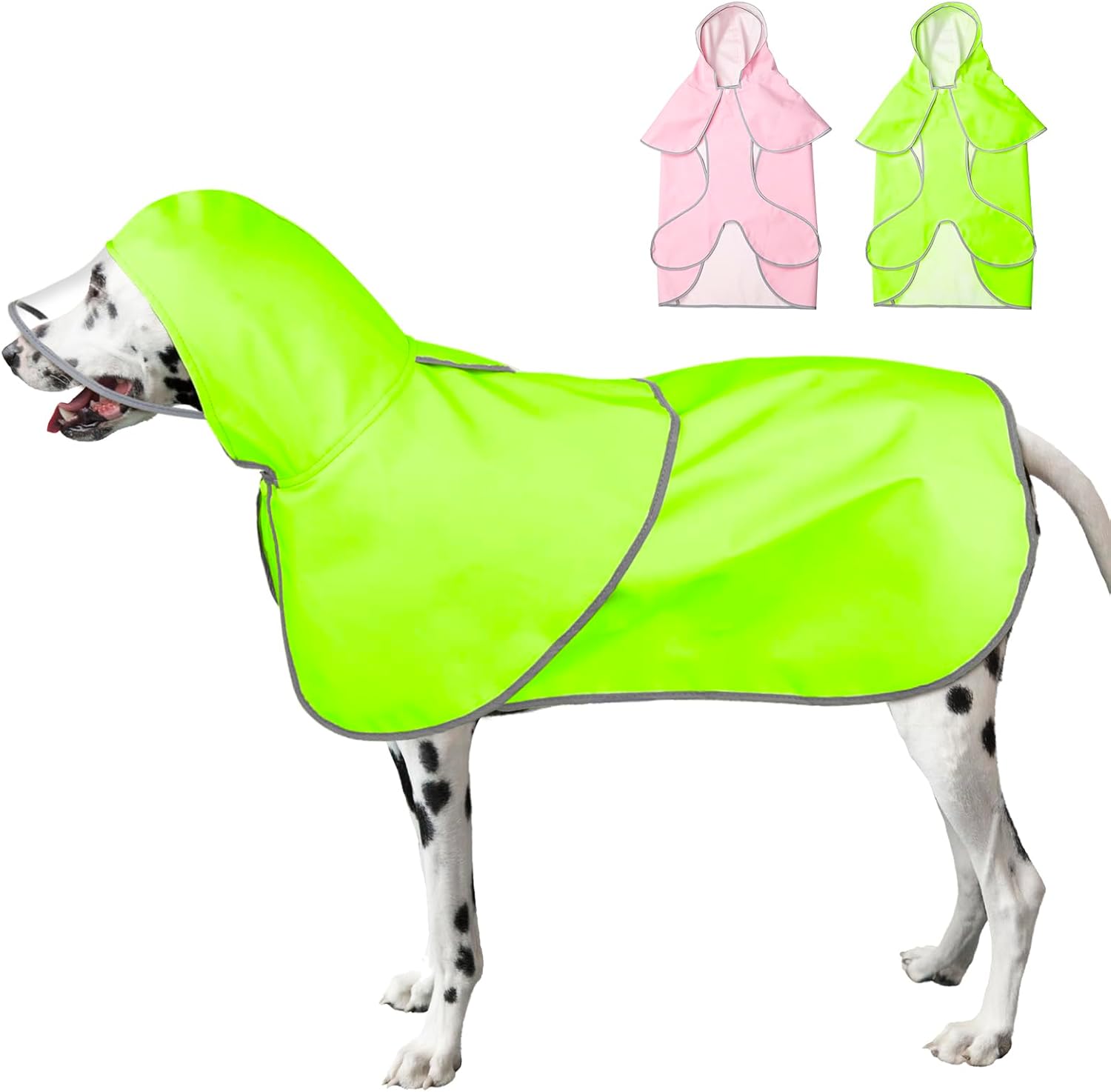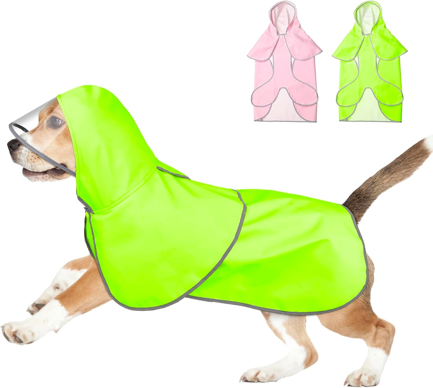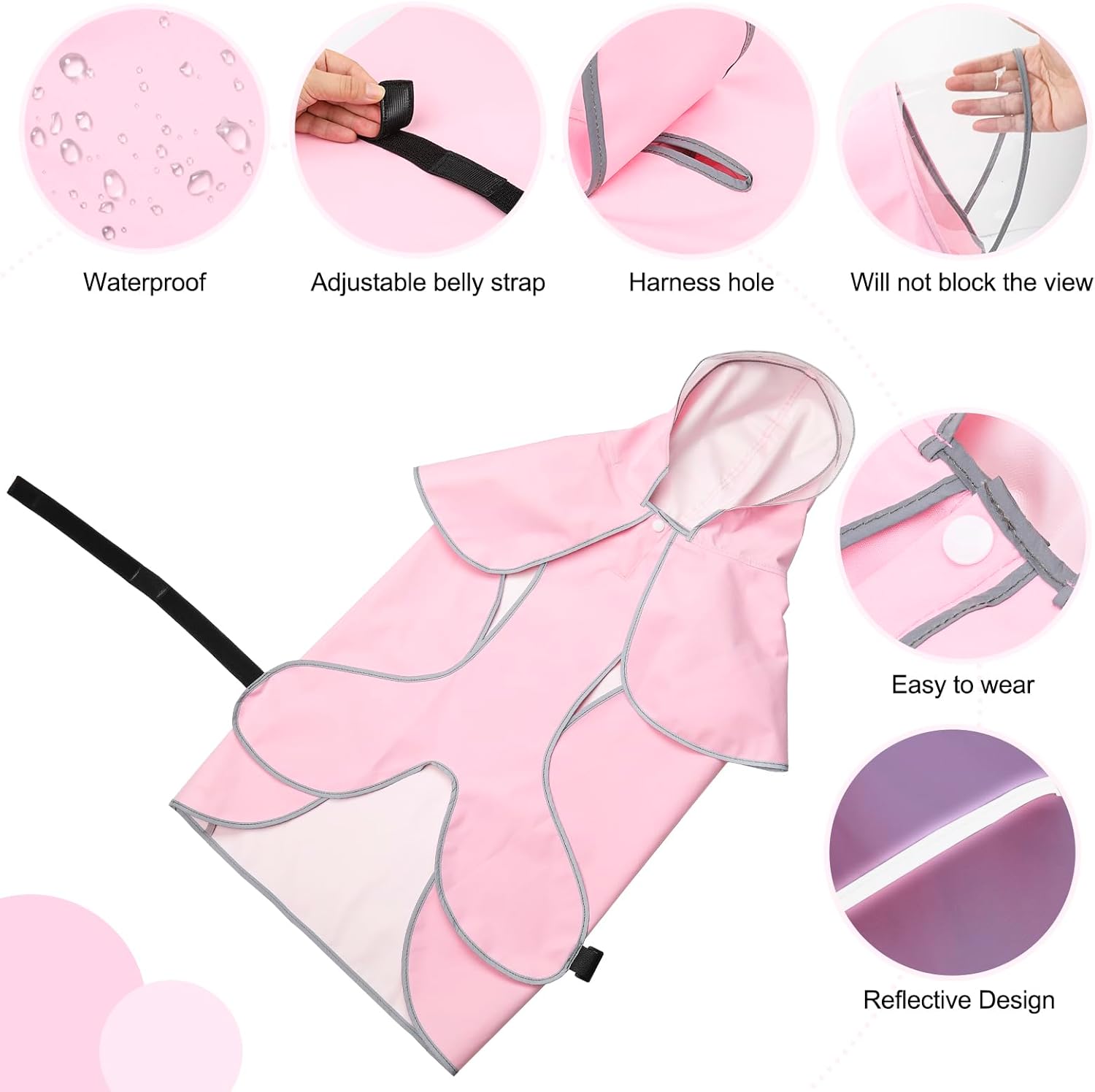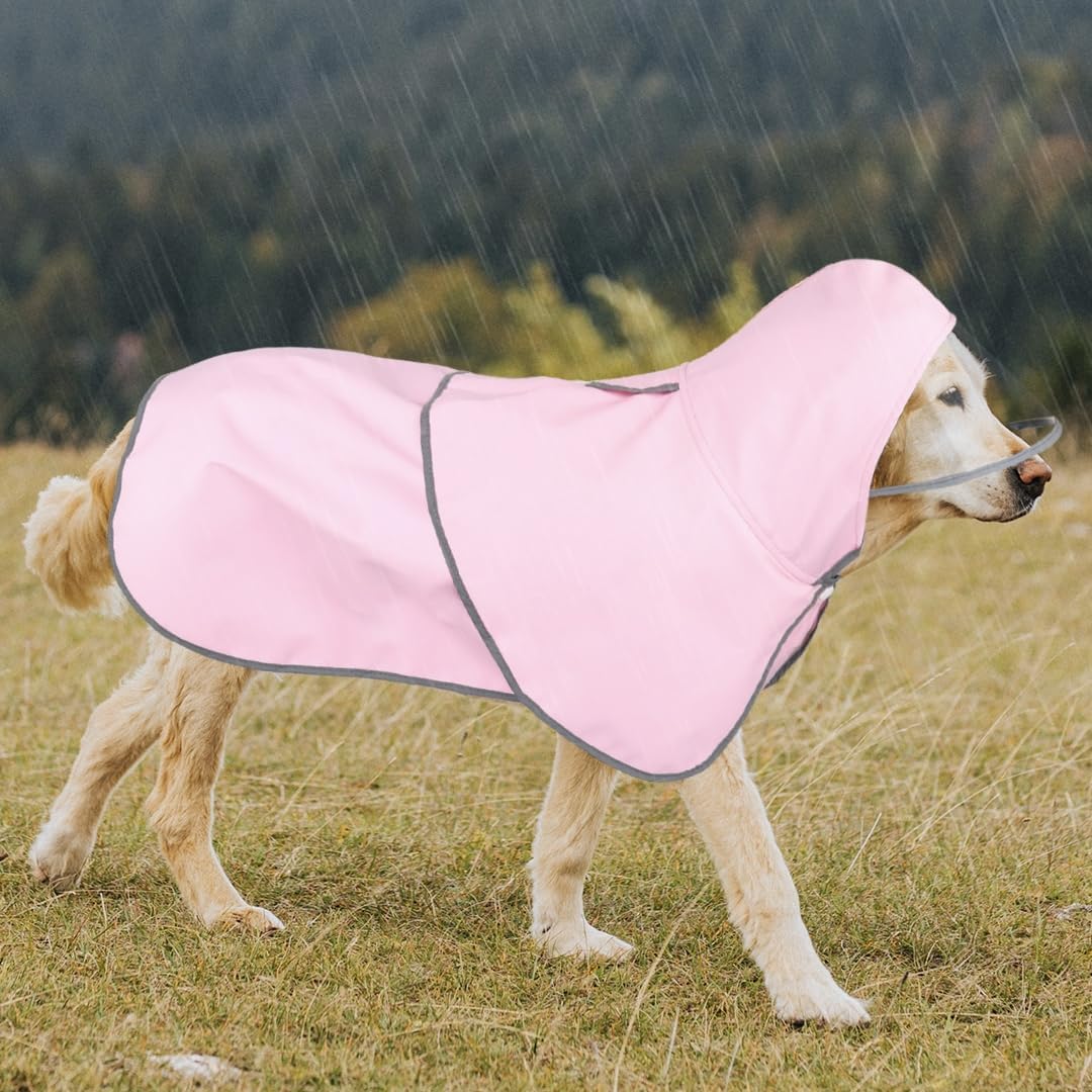 Reflective Dog Raincoat - Waterproof Dog Rain Jacket Adjustable Hooded Pet Poncho with Leash Hole, Lightweight Doggie Rainwear with Transparent Cap Brim (X-Large, Pink)