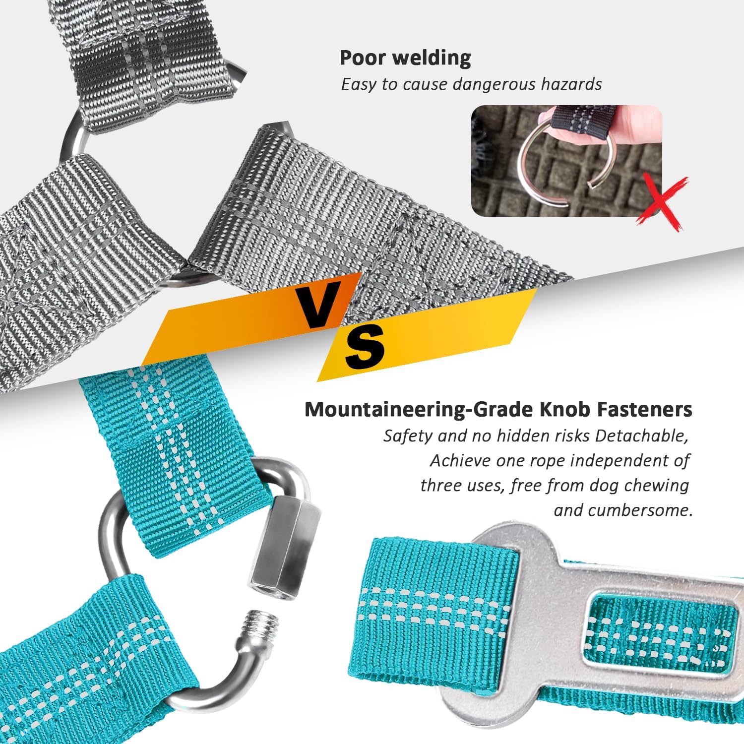 Rotates without knots for ease of use. Too much pulling force may cause the latch to break! Use it with caution for dogs over 150 pounds(68 KG)!