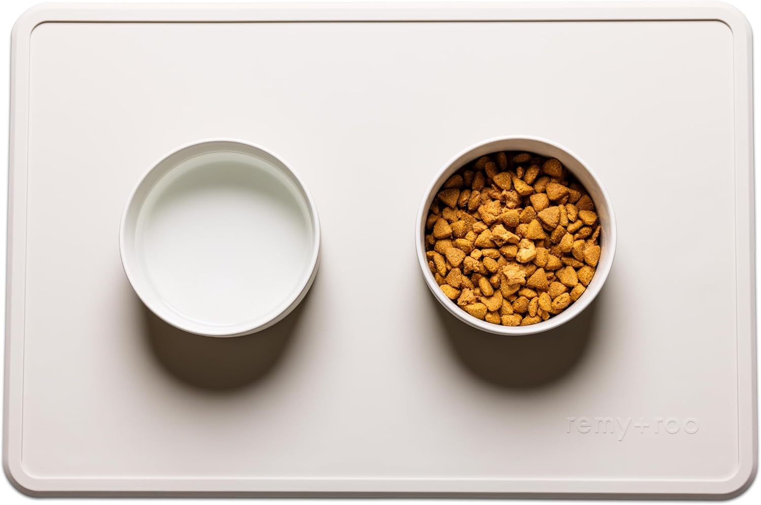 - VERSATILE USAGE: Not just a mat for dog food and water bowls, the Remy+Roo cat feeding mat can also be used for water bowl mat, toys, or as a cat mat for food and water. It’s perfect for placement in multiple settings like kitchens, living rooms, or patios.