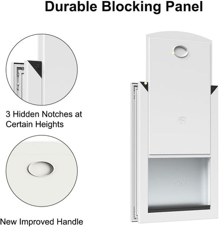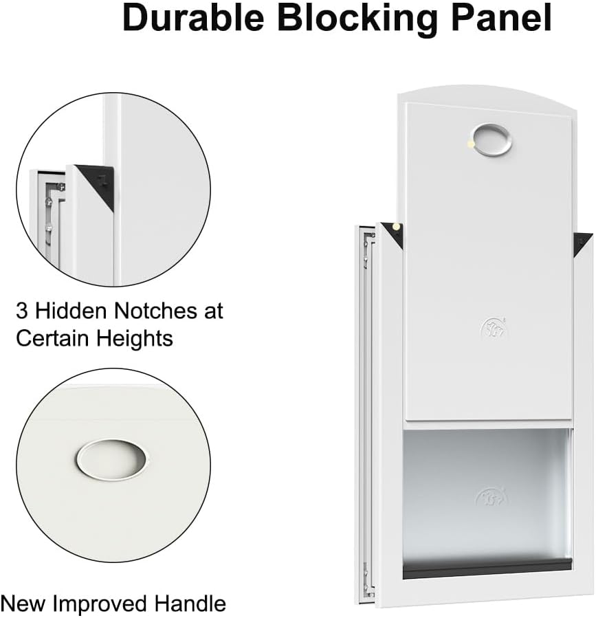 - 【Rugged & Energy-Saving】Our large dog doors are made out of rugged new aviation aluminum alloy material that is proven to be sturdy and stainless. Magnetic Flap designed to enable the door plate to quickly reset after being lifted. Additionally added exterior slide-in locking panels to better against extreme weather, and air drafts