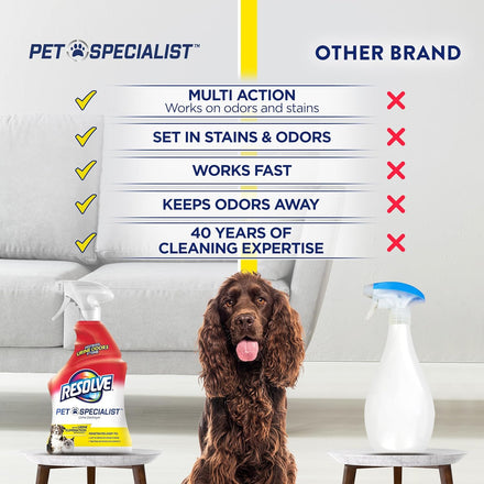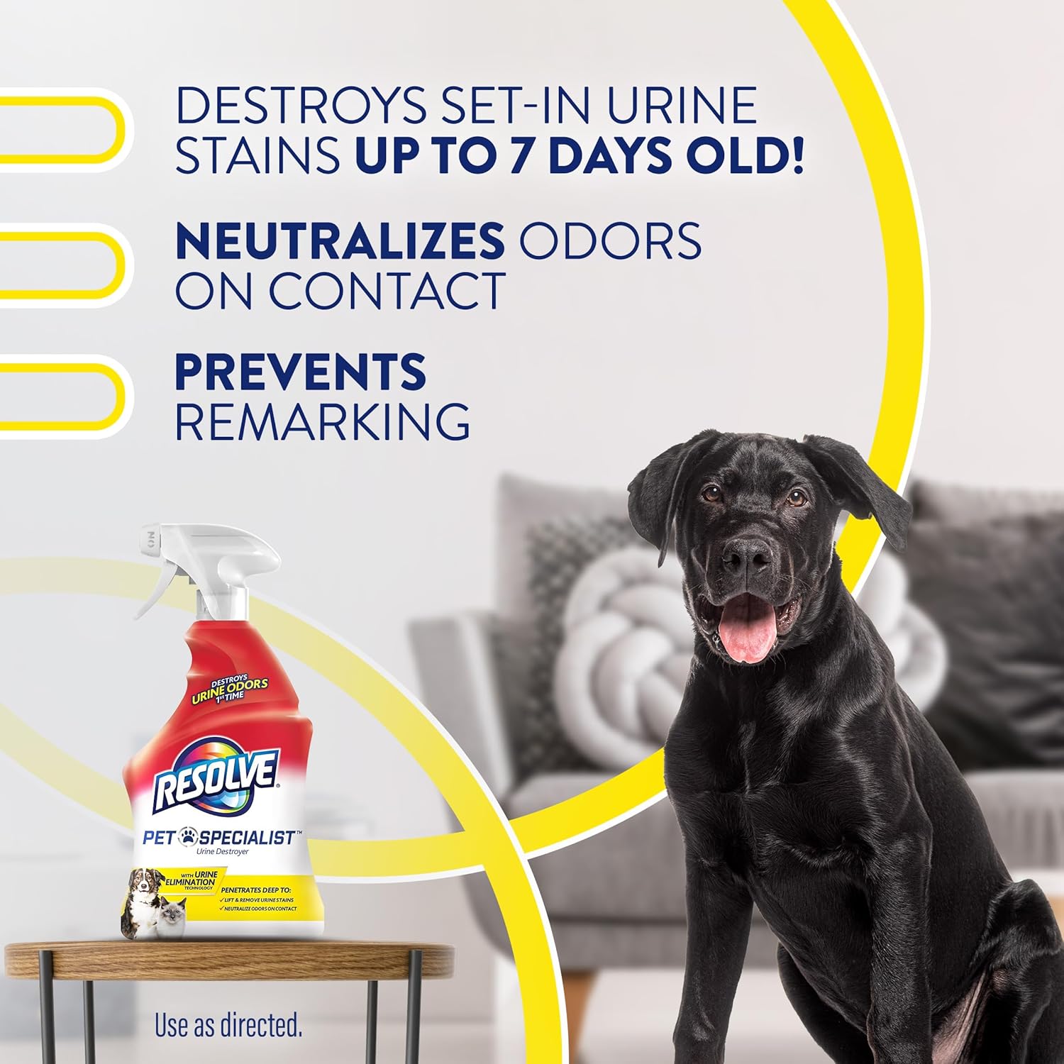 Resolve Pet Specialist - Spray destructor de orina – Removedor de manchas y olores de mascotas, solución limpiadora de alfombras para orina de gatos y perros, 22 onzas líquidas