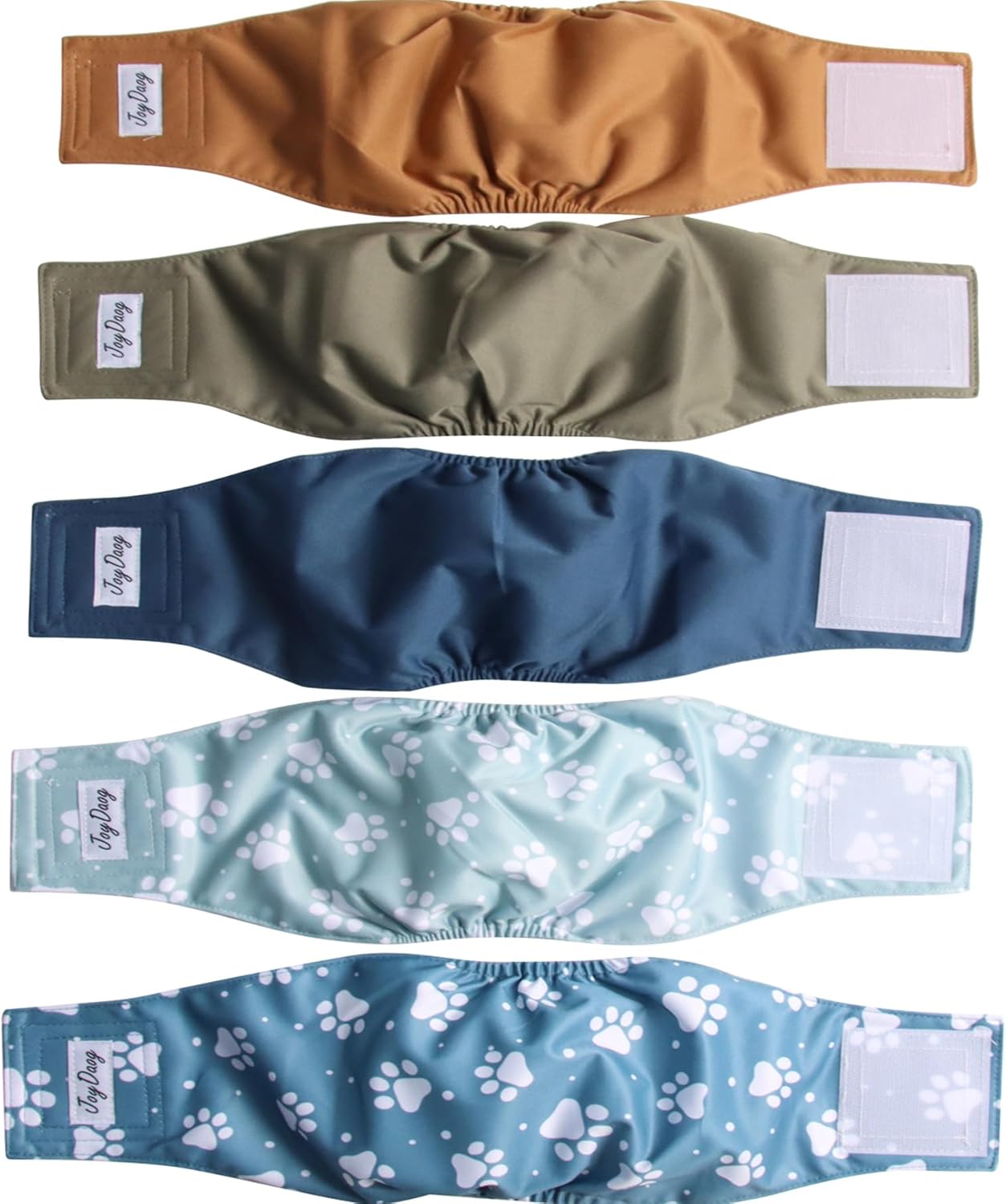 - 5 FASHION COLORS,REUSABLE AND WASHABLE,DURABLE:Fit machine or hand washable,these diapers are more save money,comfort and environmentally friendly than the disposable dog diapers.