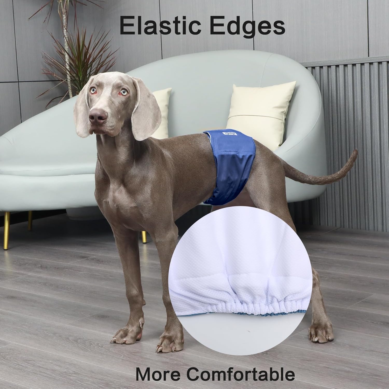 - SUPER STRONG ABSORPTION,and LEAKPROOF,KEEP YOUR HOUSE CLEAN:strong absorption diaper pad is sewned into the diaper middle ,we are uniquely designed with leak protection of 2 layers microfiber which can easily absorb urine,keeps your dog drier during prolonged use, and has a waterproof outer layer to prevent leaks and damage to carpet,sofa etc.