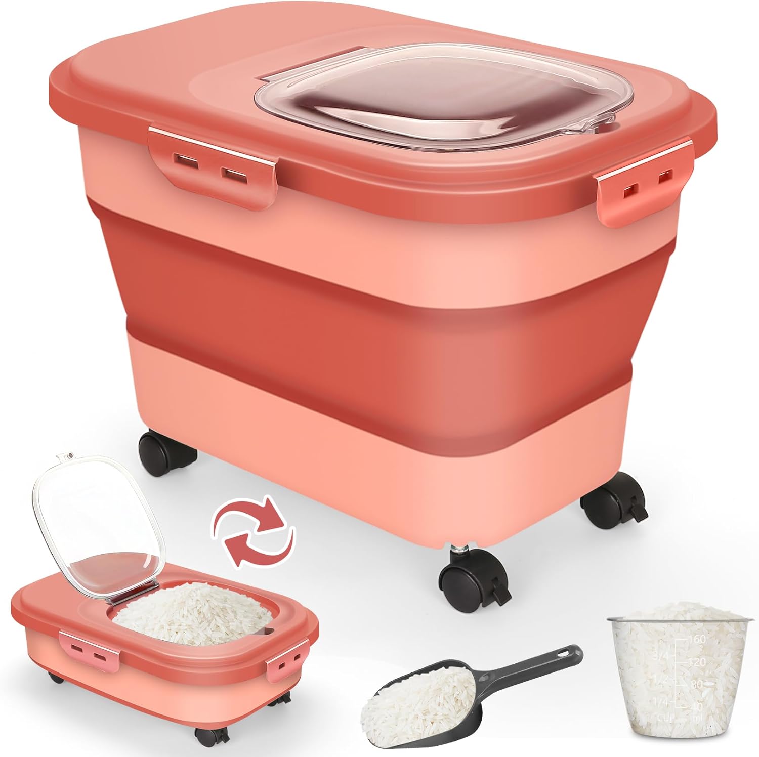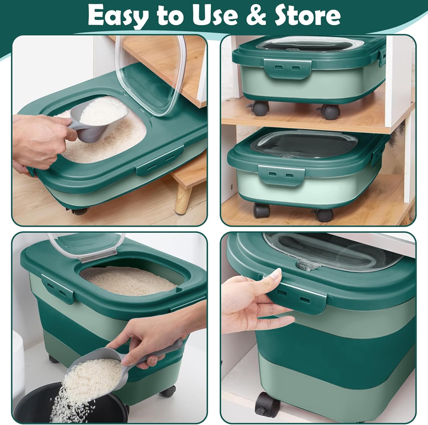 Package Content: 1 x Collapsible Rice Storage Container 4 x Wheels 1 x Scoop 1 x Measuring Cup
