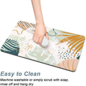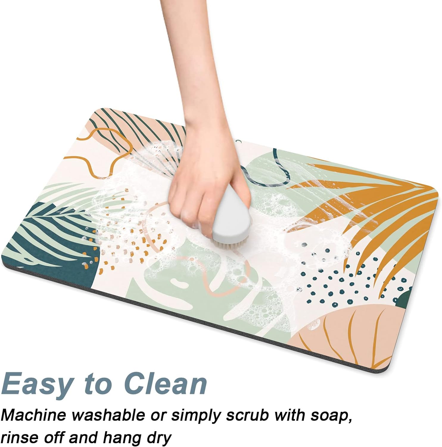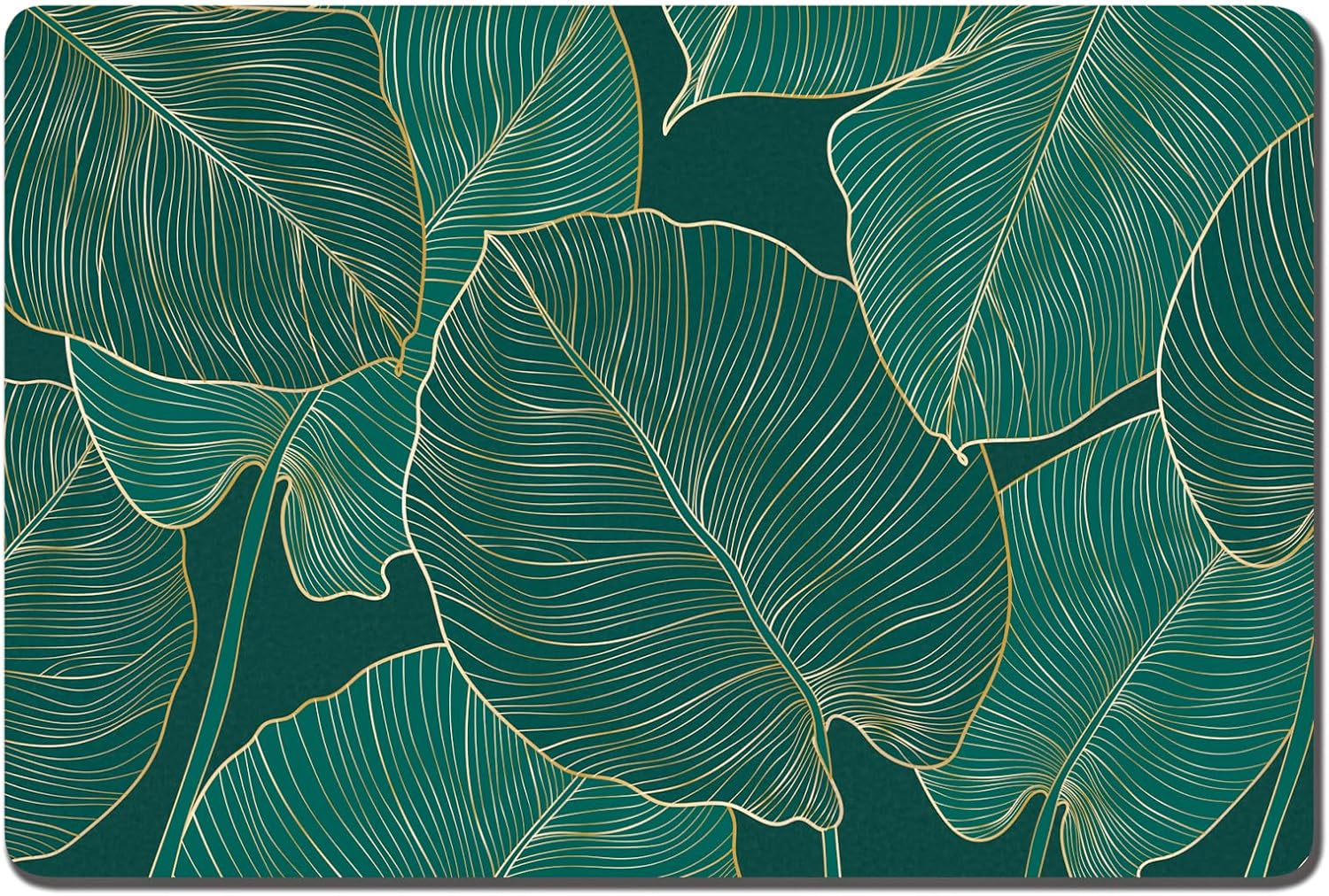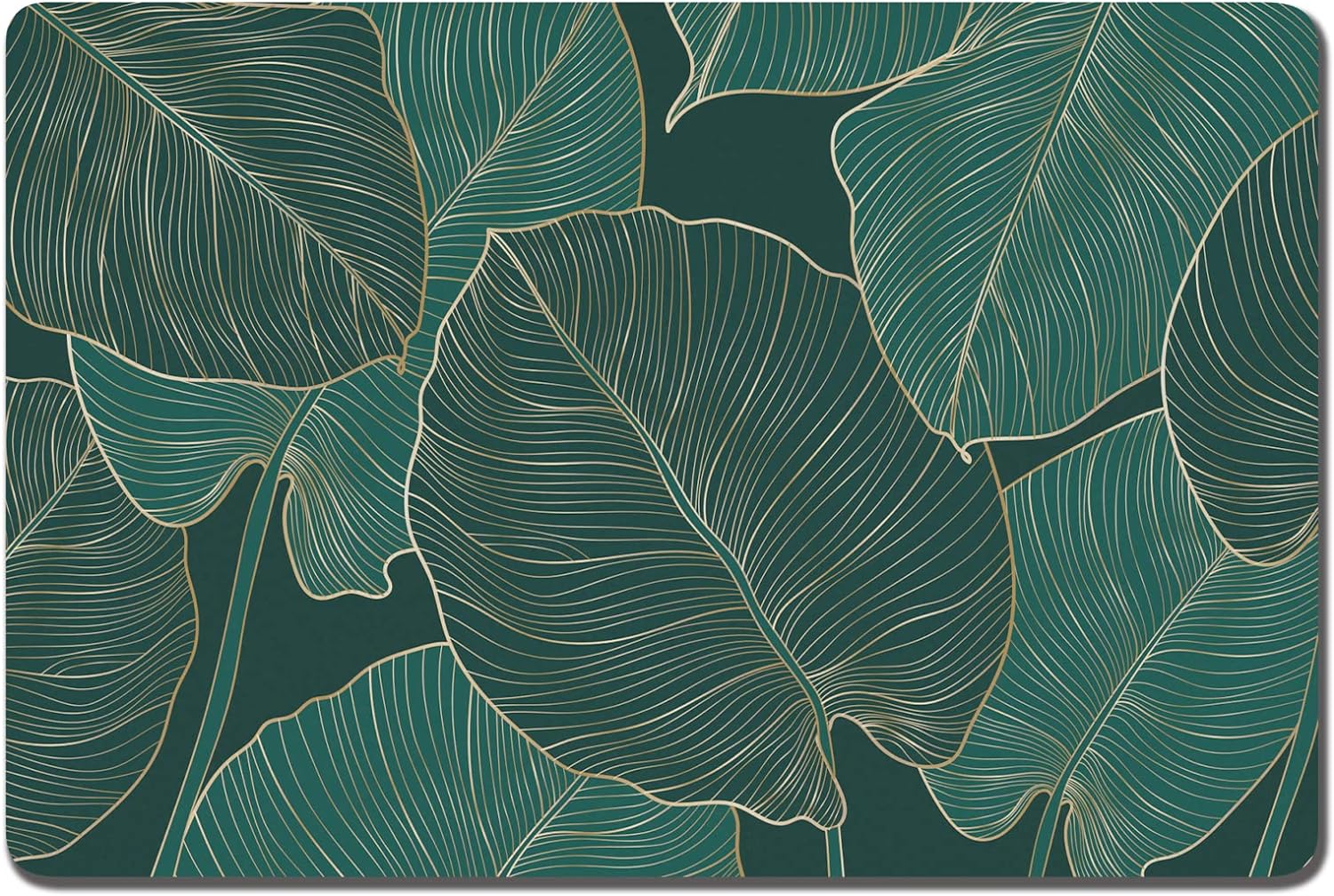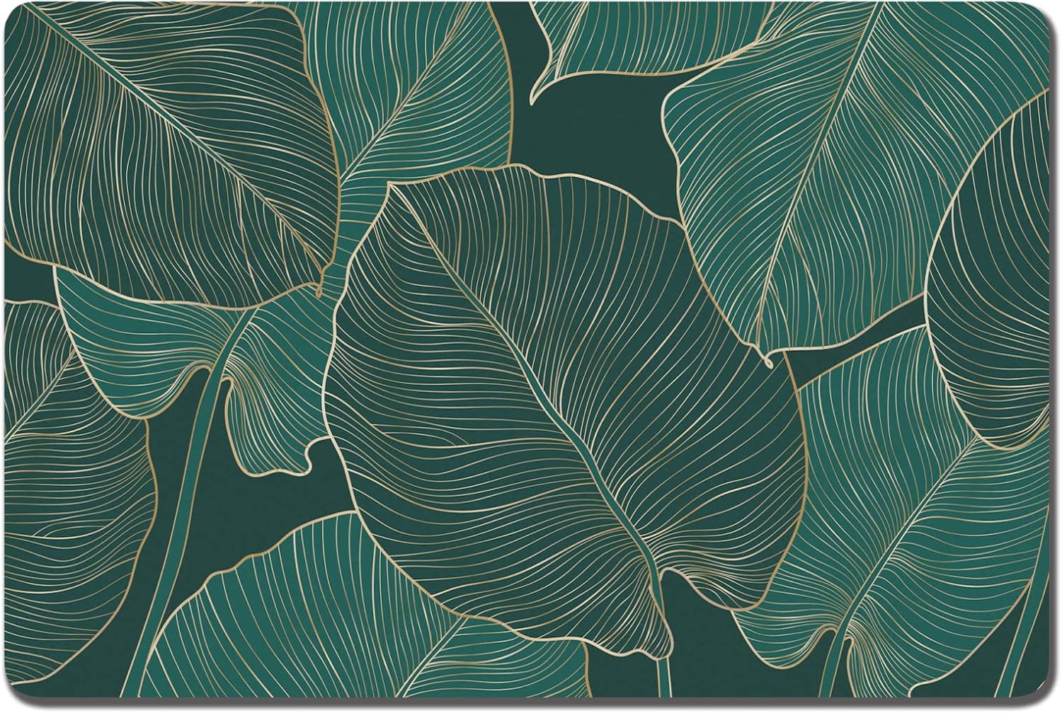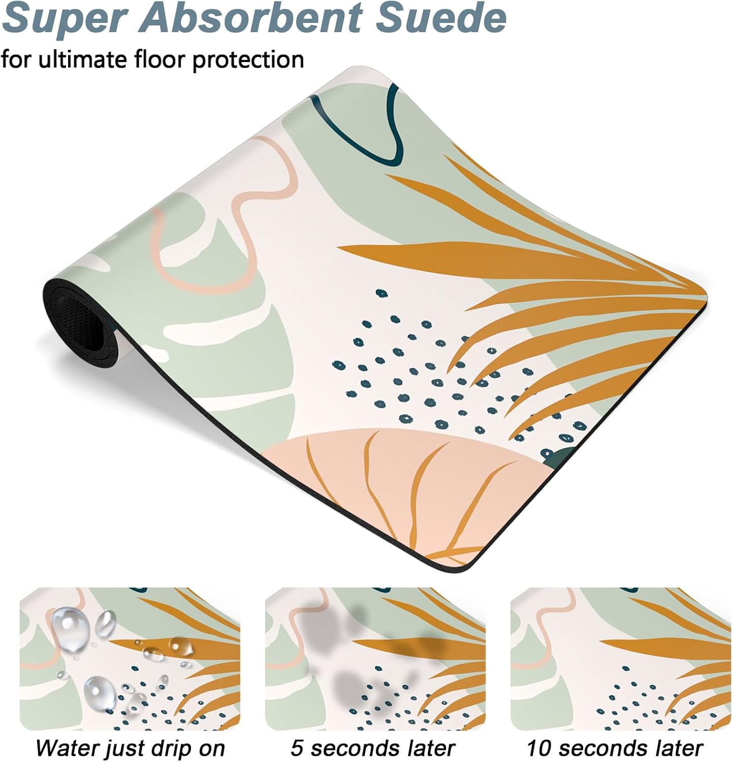 Rnivvi Dog Food Mat, 12" x 19" Boho Absorbent Dog Cat Bowl Mat for Food and Water, Cute Anti-Slip Rubber Pet Feeding Rug Protect Floors, Puppy Placemat for Feeding & Watering Supplies, Tropical Leaves