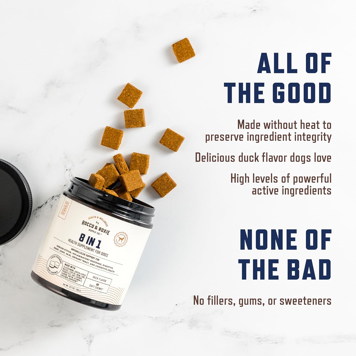 - Lovingly Made in the USA with Domestic and Global Ingredients – Everything we do at Rocco & Roxie is for the love of pets. That’s why our soft chews are made with no fillers, gums, or sweeteners - just pure, high-quality ingredients your dog will love. Every chew is made without heat during our cold form process to preserve the integrity of our ingredients for quality health support you can trust.