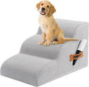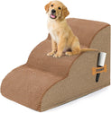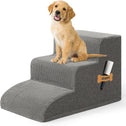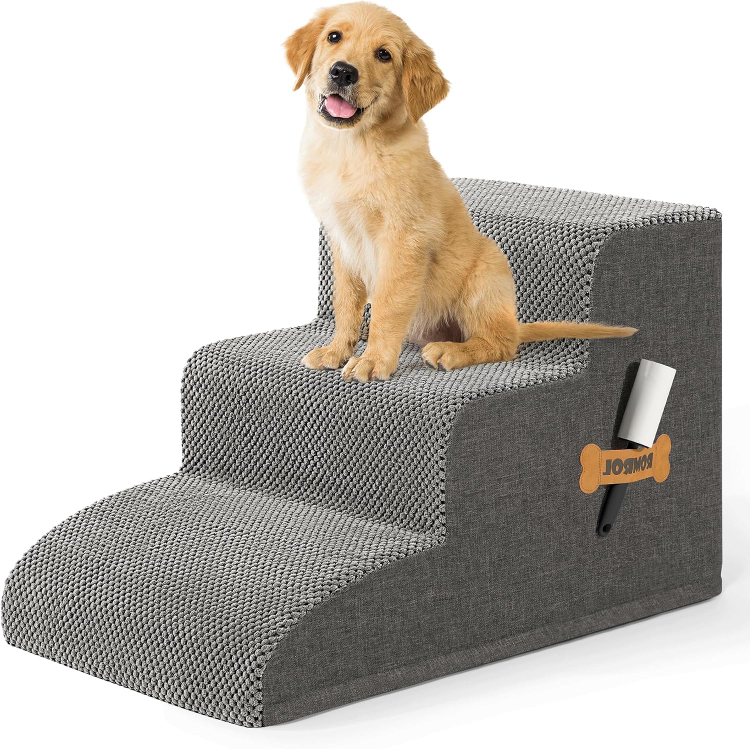 - DOG-FOCUSED DESIGN: Different from traditional right-angle dog stairs, this more scientifically designed slope dog ramp is more suitable for puppies and pets with knee joint injuries. The size of the 3-step pet stairs is 23.6*15.7*15.7 inches, whether it is the bedside, sofa or bay window