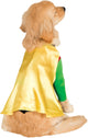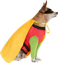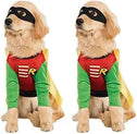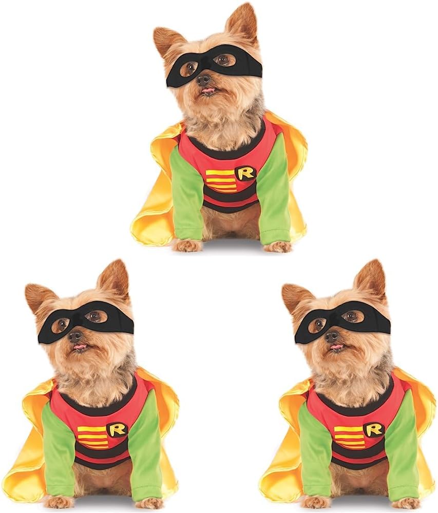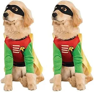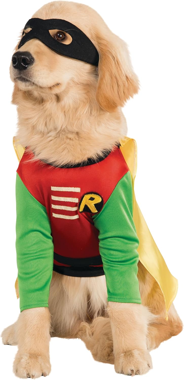 - Officially licensed DC Comics Teen Titans Robin pet costume comes with a vibrant red shirt featuring green sleeves, a detachable cape, and an eye mask for your furry superhero. Perfect for pet dress-up and Halloween parties!